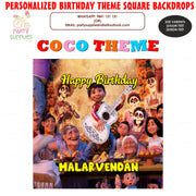 This Coco theme based Square Backdrop can be personalized with your baby details. You can share the baby details in form provided below. It comes with different variant sizes.