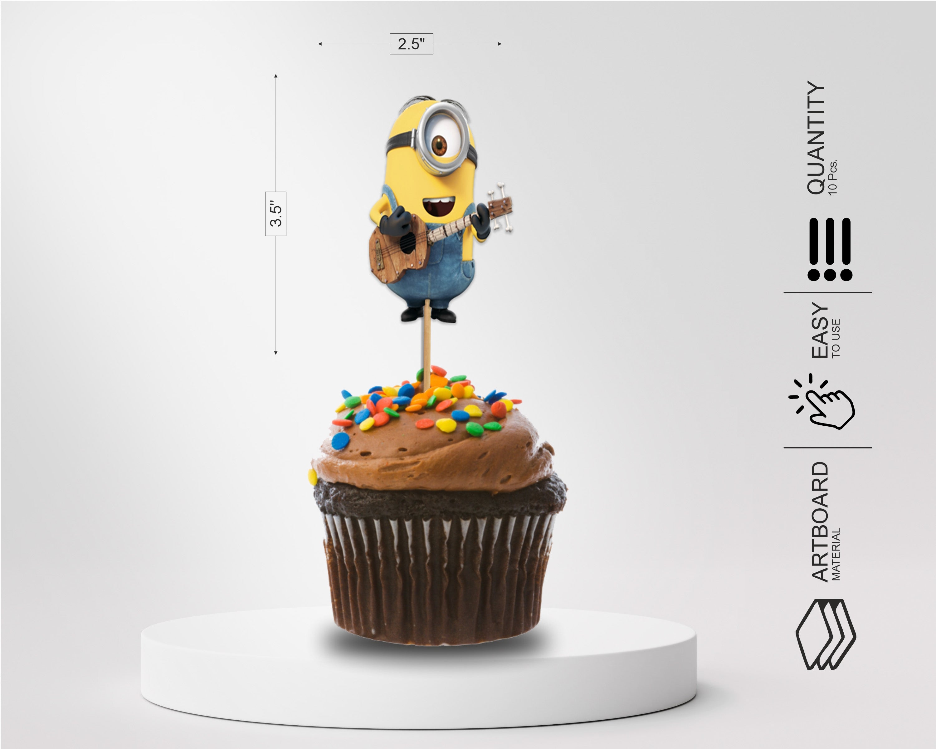 Top your cupcakes off with Despicable Me Cupcake Picks! These cupcake picks feature printed designs of Minions . Simply stick these cupcake picks on top of your foods for a display that is one in a Minion! These plastic picks are great for decorating cupcakes, appetizers, and other snacks at your little one's Minion party!