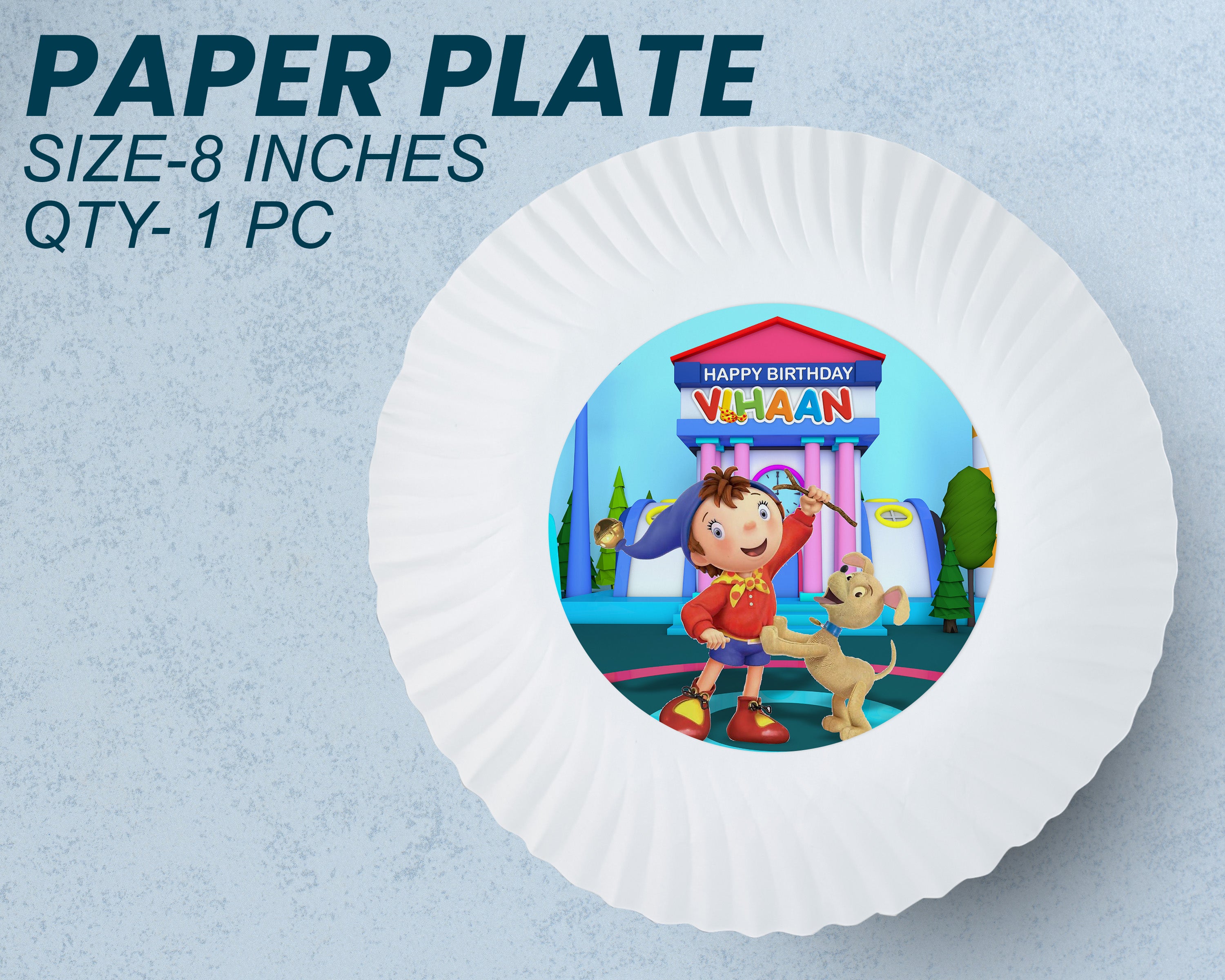 Printed party cups, plates, and plain spoon combo birthday party supplies for themed parties are available with us. They are disposable and made of eco-friendly materials. Our plates are made of thick paper, with theme-based customization including baby details added, designed, printed, and pasted onto the plates and cups as shown in the reference images. They will be available only in combo sets in the below-mentioned variants.