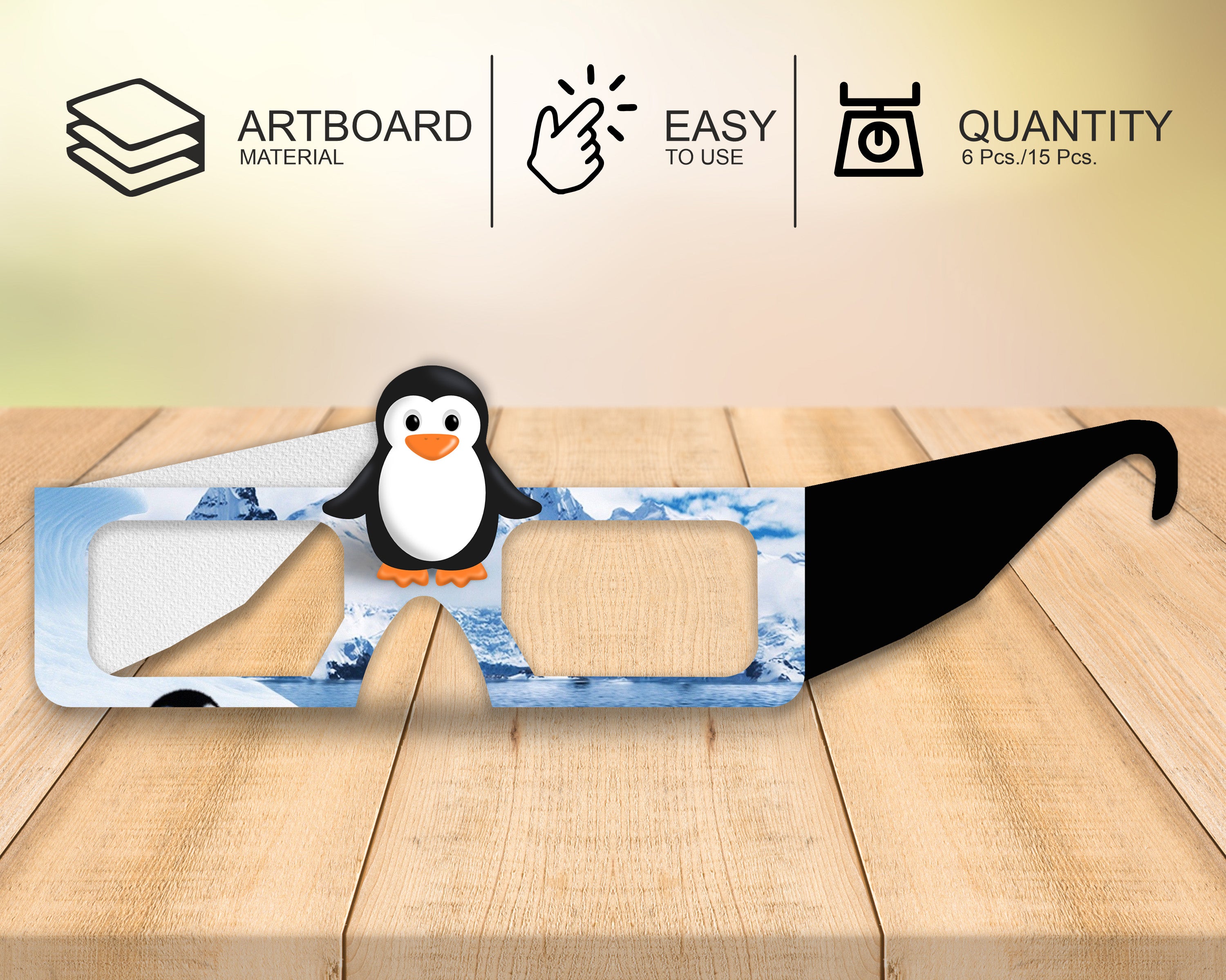 Penguin Theme based eye glasses made of thick paper material for kids birthday party celebrations. This paper goggles suits perfect for kids.