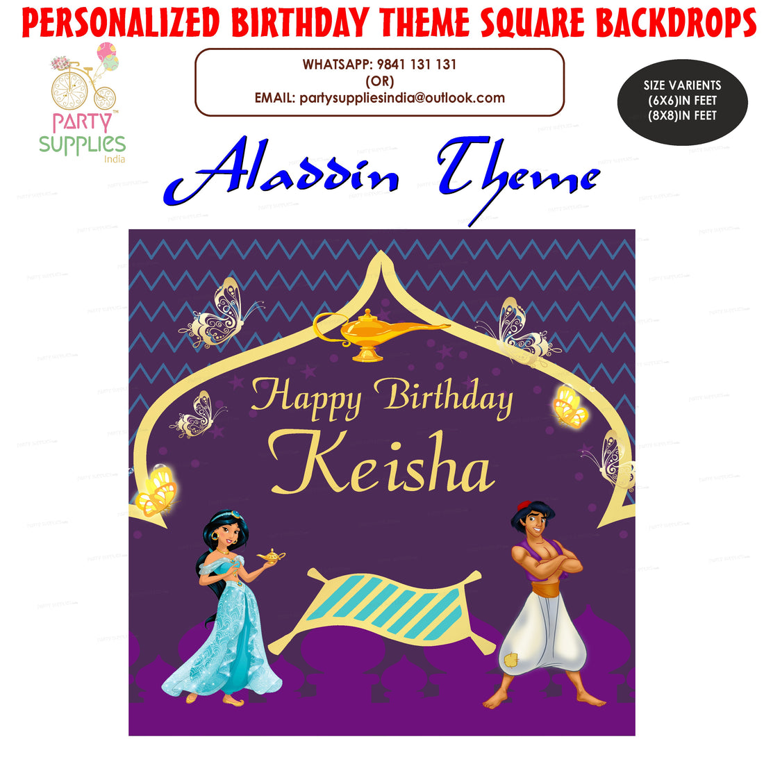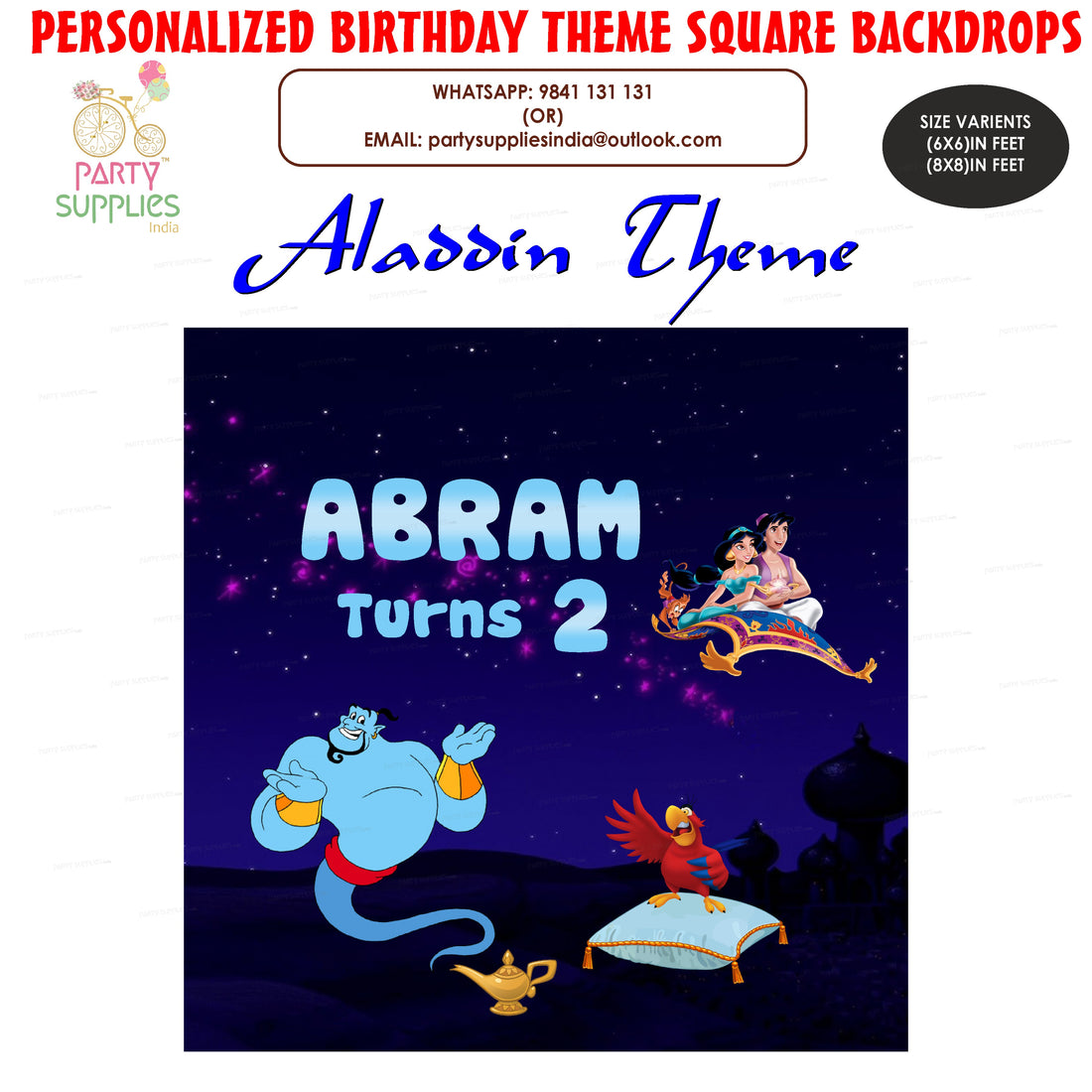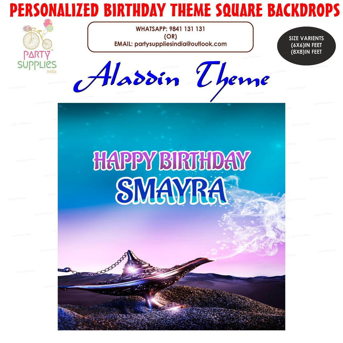 Aladdin Theme Personalized Square Backdrop- Regular price