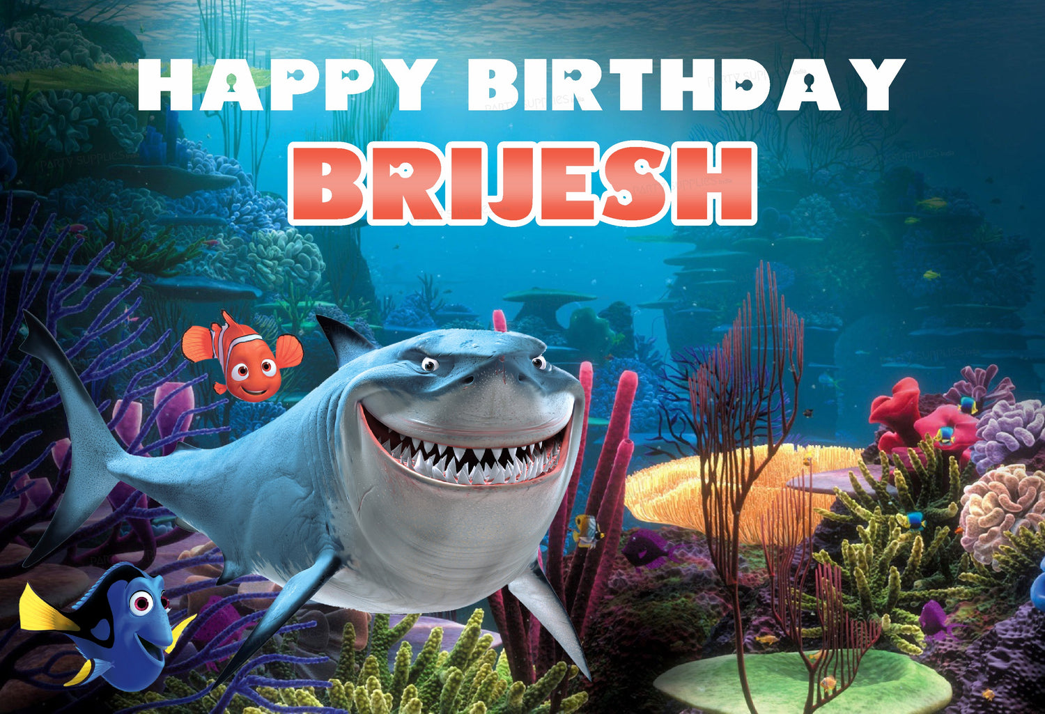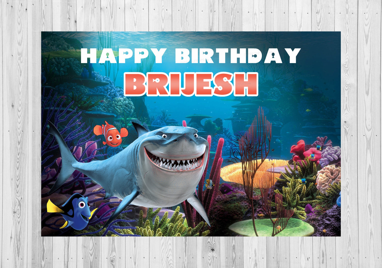 Keep swimming! Bring the adventure of Disney-Pixar's Finding Nemo into any room with this huge flex mural. This delightful design features all your favorite characters from the film, and is guaranteed to delight any Finding Nemo fan! Personalize it with Happy Birthday message too.