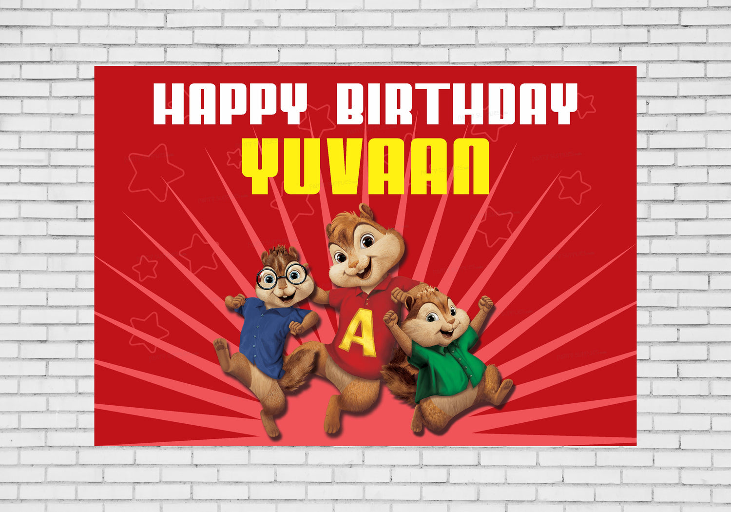 Create a one-of-a-kind scene with a custom Alvin and Chipmunks backdrop. The cardboard selfie station features Alvin, Theodore and Simon, space for a personalized message. Complete the decorations for your child's Alvin and Chipmunks themed birthday party with this custom photo booth backdrop, so guests can strike a pose for memorable selfies