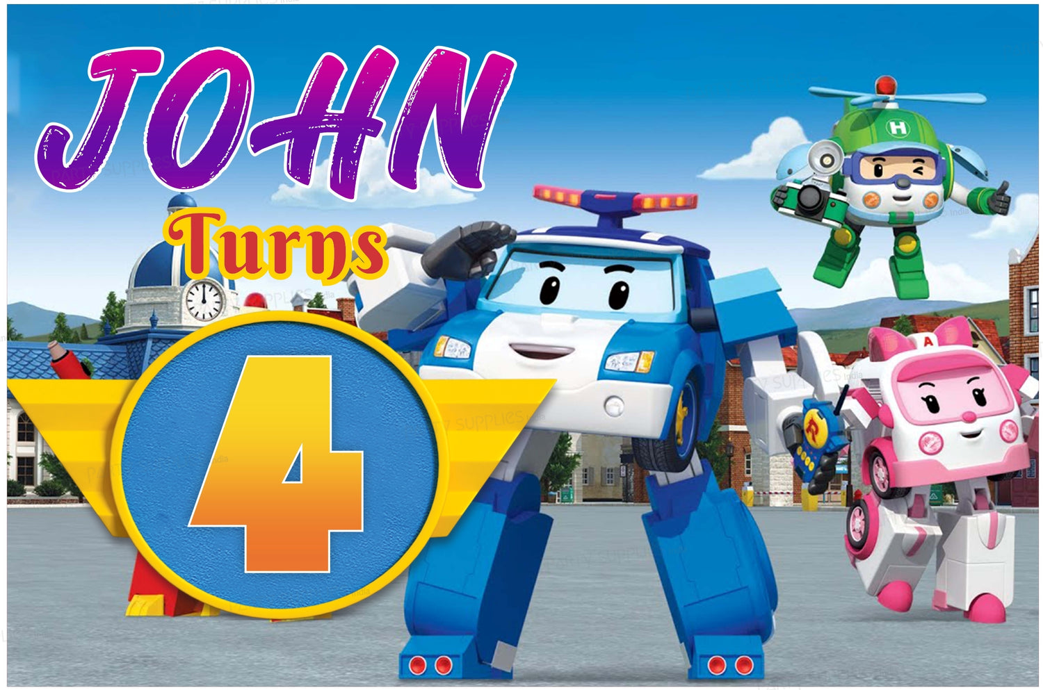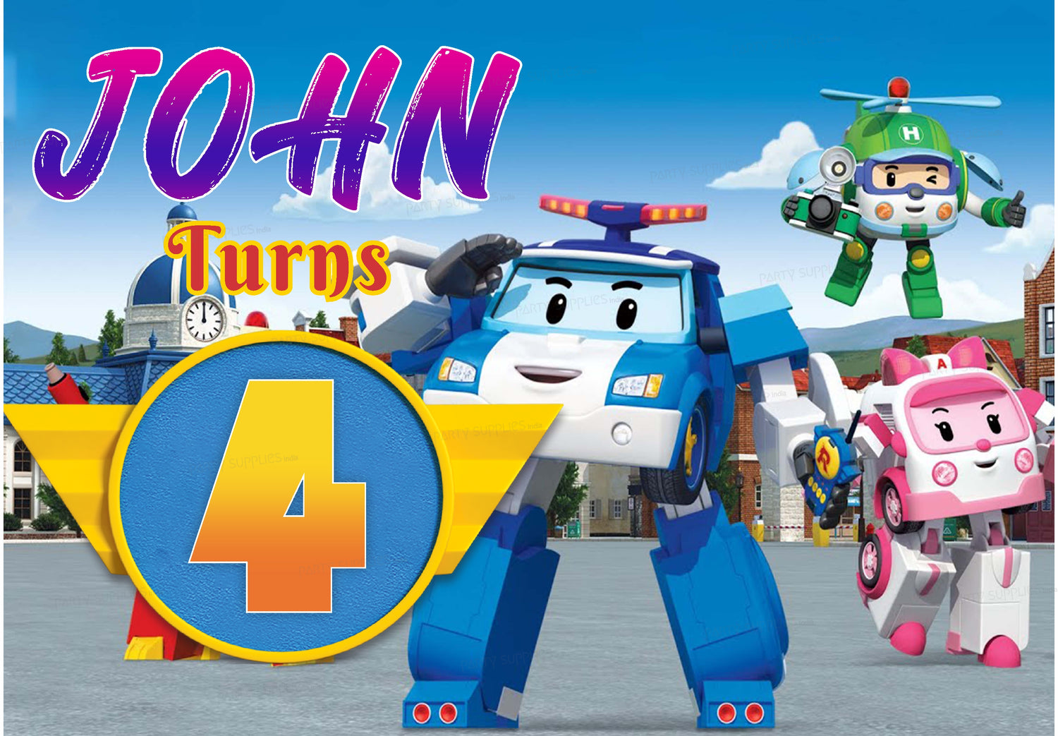Robo Poli Theme Backdrop for birthday party decorations can be customized with baby name, age amd photo. It comes with different variant sizes.