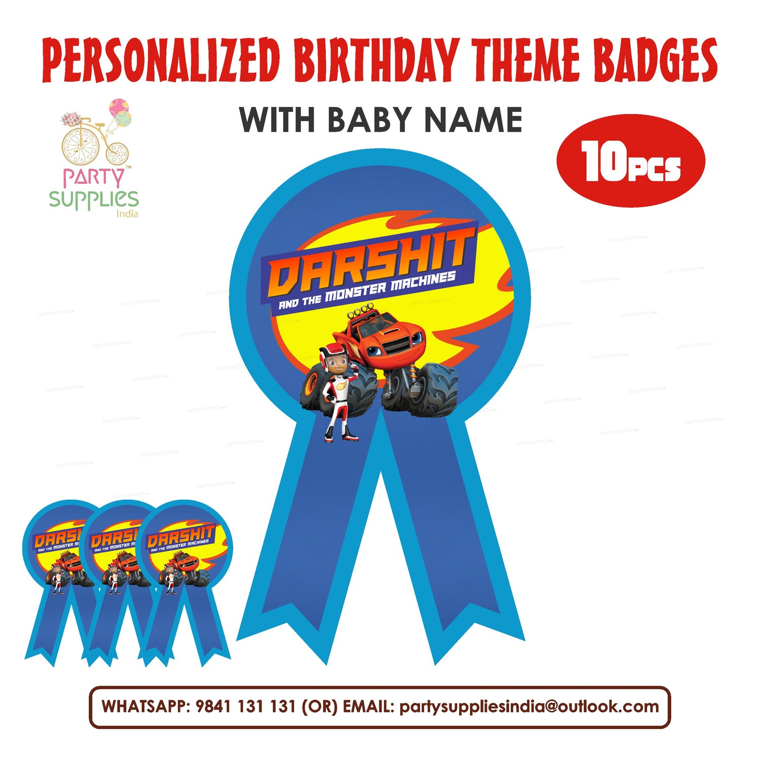 This Birthday Party Badges can be customized with your birthday boy / girl name and printed in 300 GSM ART Board. You can enter customization details below before adding to cart