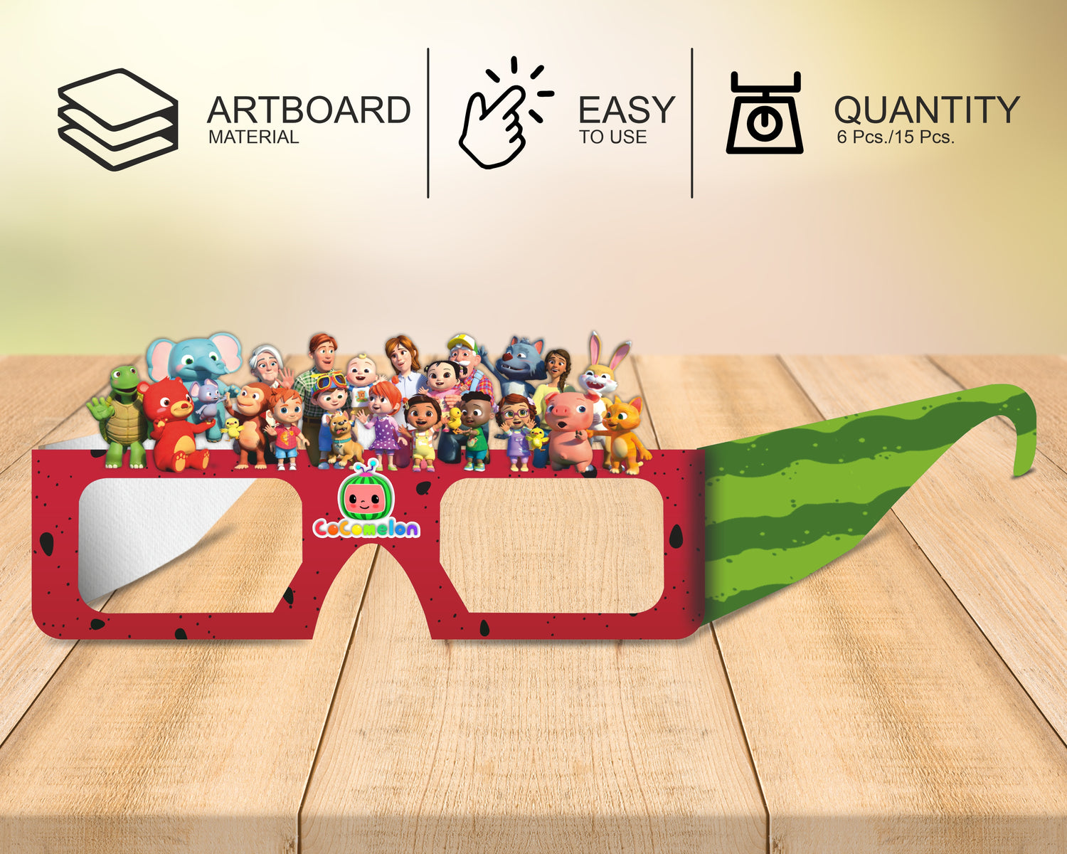 Cocomelon Boy Theme based eye glasses made of thick paper material for kids birthday party celebrations. This paper goggles suits perfect for kids.