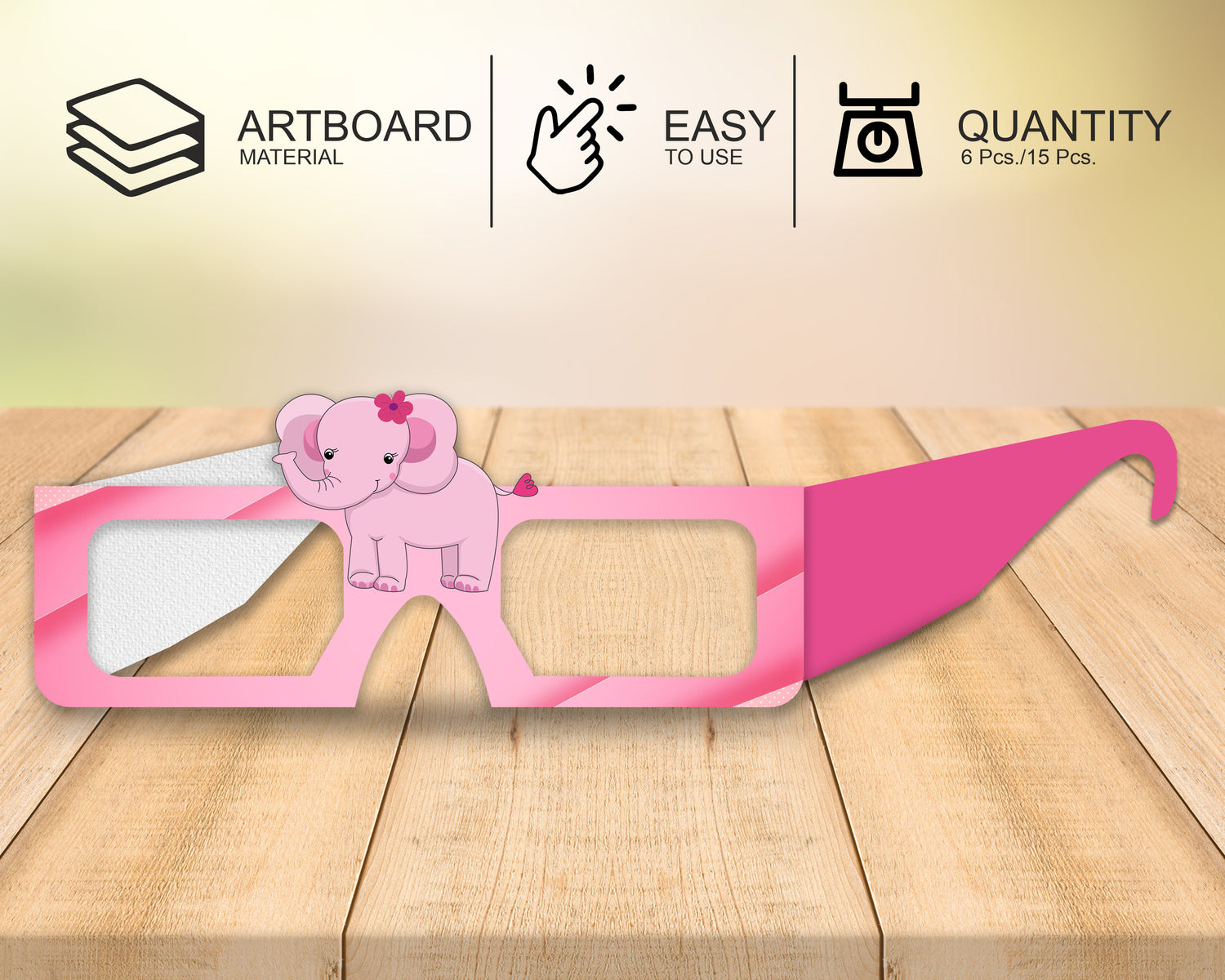 Pink Elephant Theme based eye glasses made of thick paper material for kids birthday party celebrations. This paper goggles suits perfect for kids.