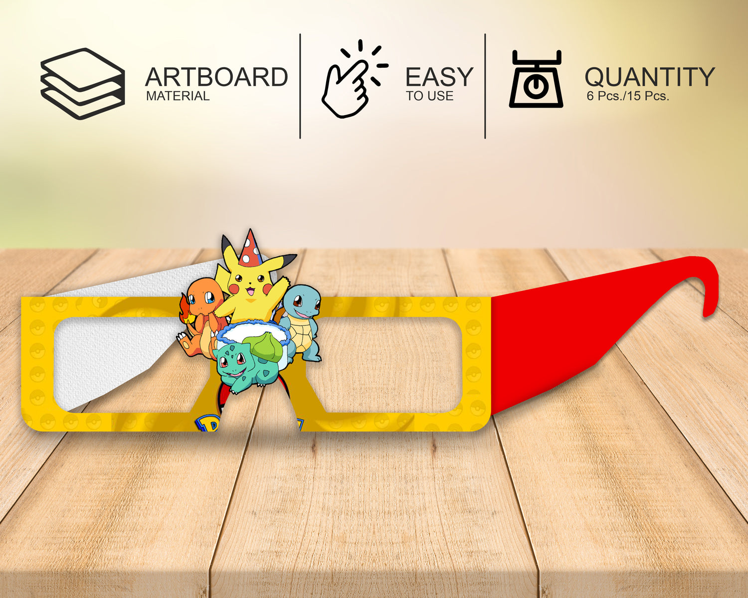 Pokemon Theme based eye glasses made of thick paper material for kids birthday party celebrations. This paper goggles suits perfect for kids.