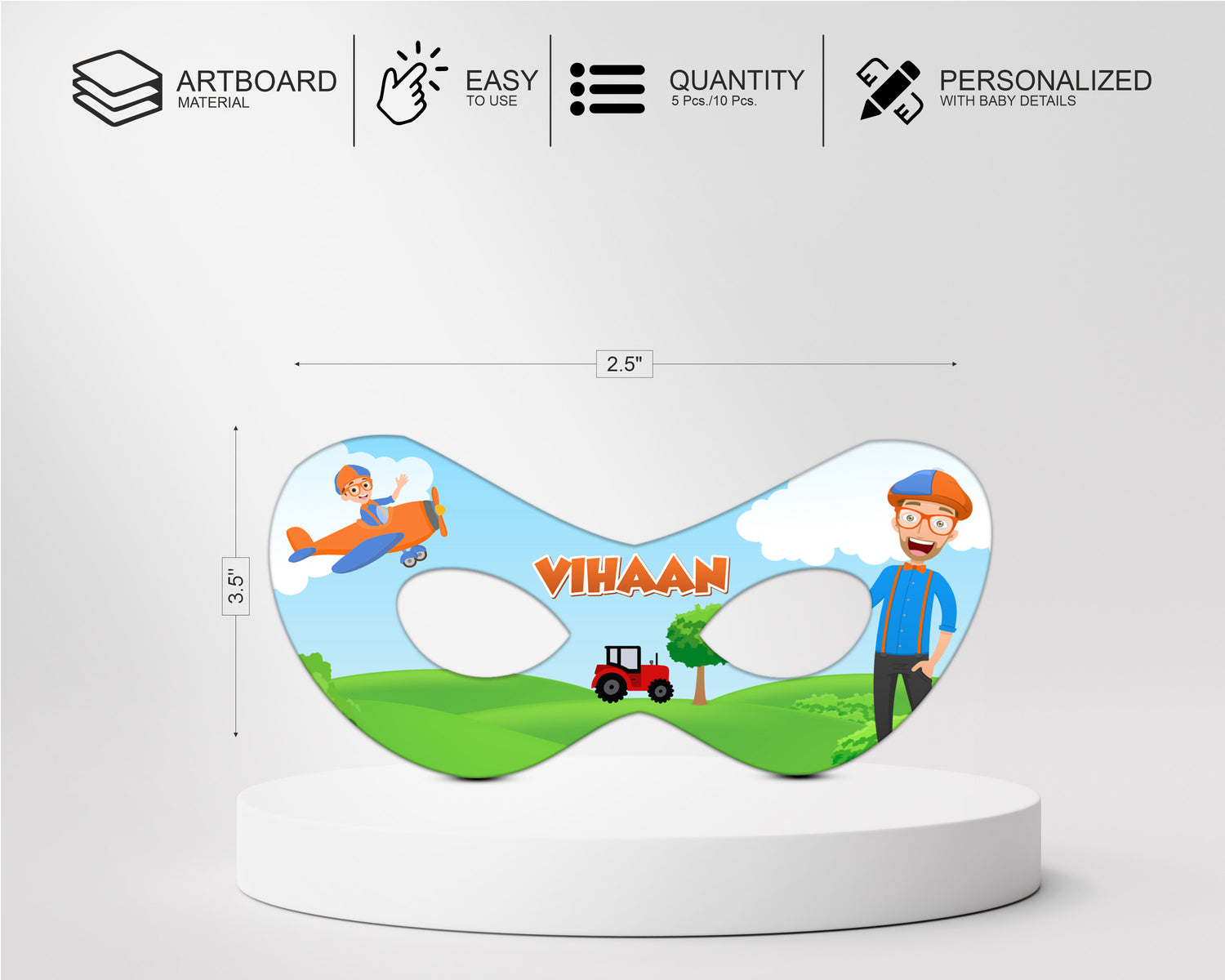 Creating colourful birthday party decoration with Blippi theme based eyemask. Get colourfull eyemasks for birthday party event for your lovely kids . The package includes 5 - 10 Masks, each with an attached elastic string.