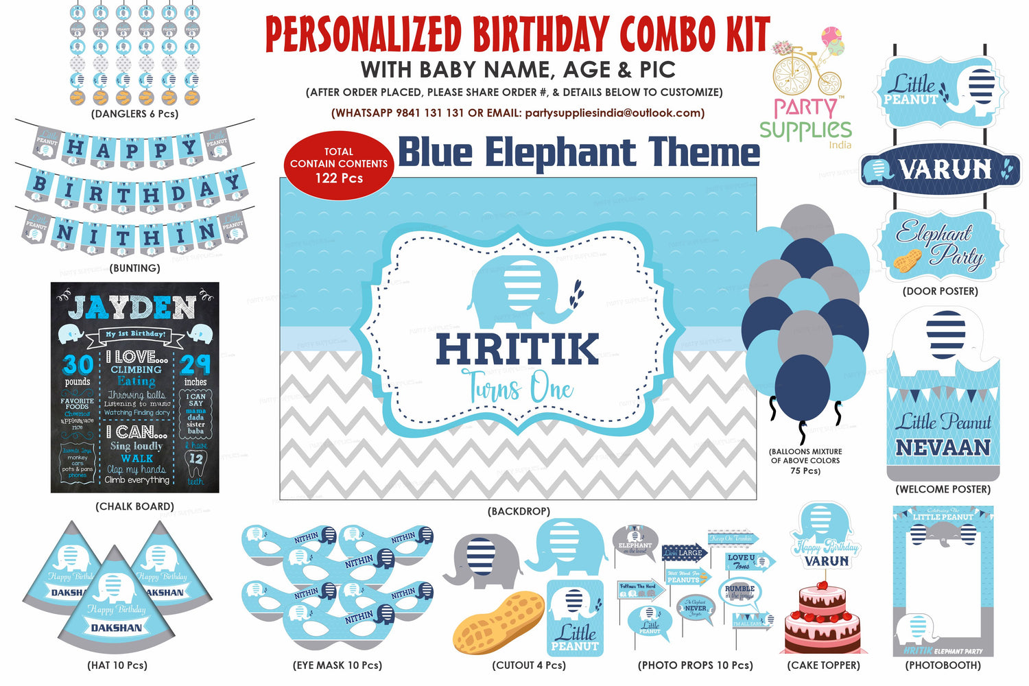 Use the Blue Elephant theme's bunting banner and door poster to welcome guests at the event’s front entrance. Then, suspend the danglers down your party table and hang the party decoration swirls above. Cake toppers make for impressive centerpieces or can be used as photo booth props. The cupcake toppers are cute and trendy. The chalkboard with the smallest of details about the child will be a memoir forever. The fairylight will help you decorate the photo booth or the stage elegantly. The cutouts personalized to the theme will enhance the color of the venue. The photobooth and photo props will help you flaunt the theme into pictures.