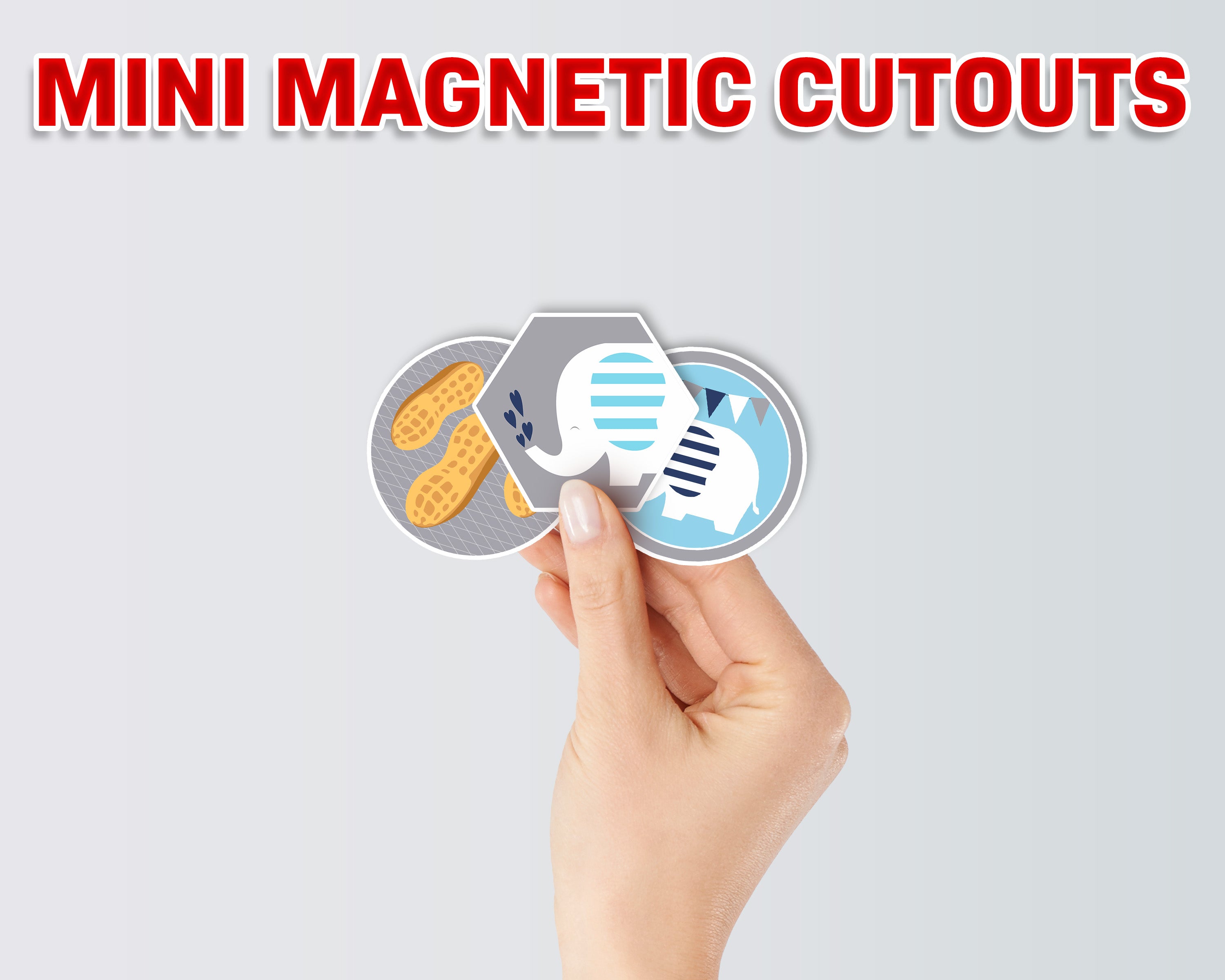 All stickers have a magnetic backing, ensuring they won't fall off easily and perfect for theme based return gifts. 1 Quantity represents a single pouch set which includes 6 magnetic stickers, each with a size of at least 4 inches in either height or width, depending on the design.