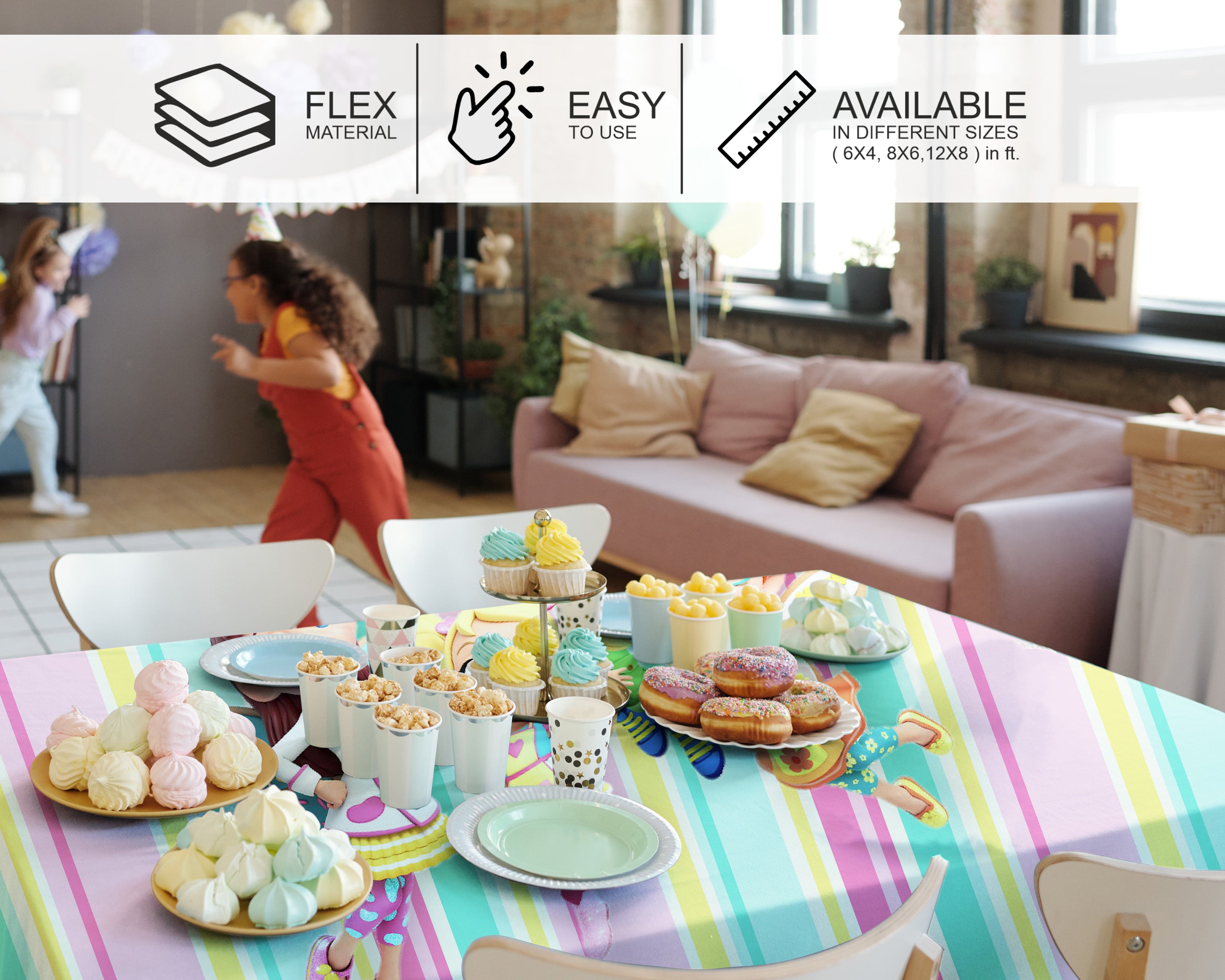 Premium Flex Material Cake Table Cover is Elegant, easy to clean, and lightweight. This theme-based cover features attractive designs,