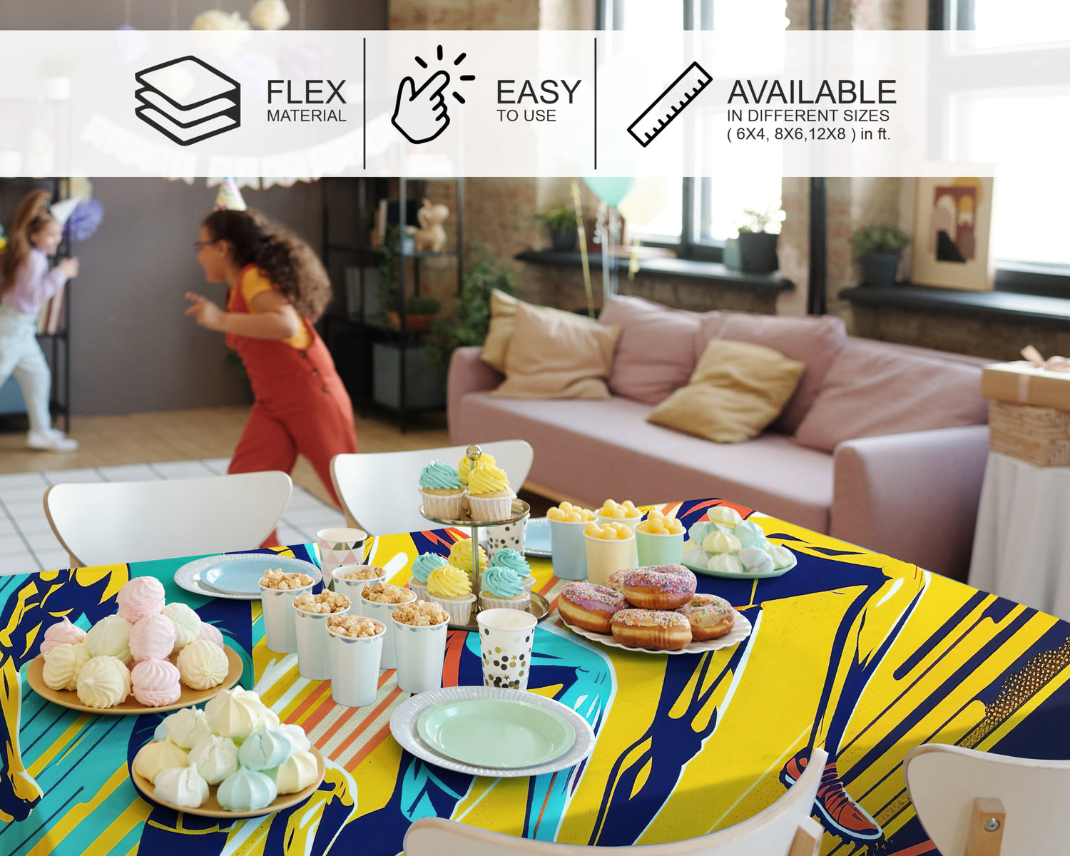 Premium Flex Material Cake Table Cover is Elegant, easy to clean, and lightweight. This theme-based cover features attractive designs, perfect for one-time use in birthday decorations. Please note, the product color may slightly vary due to photographic lighting sources or your display settings. Three sizes are available, as shown below in the variants section.