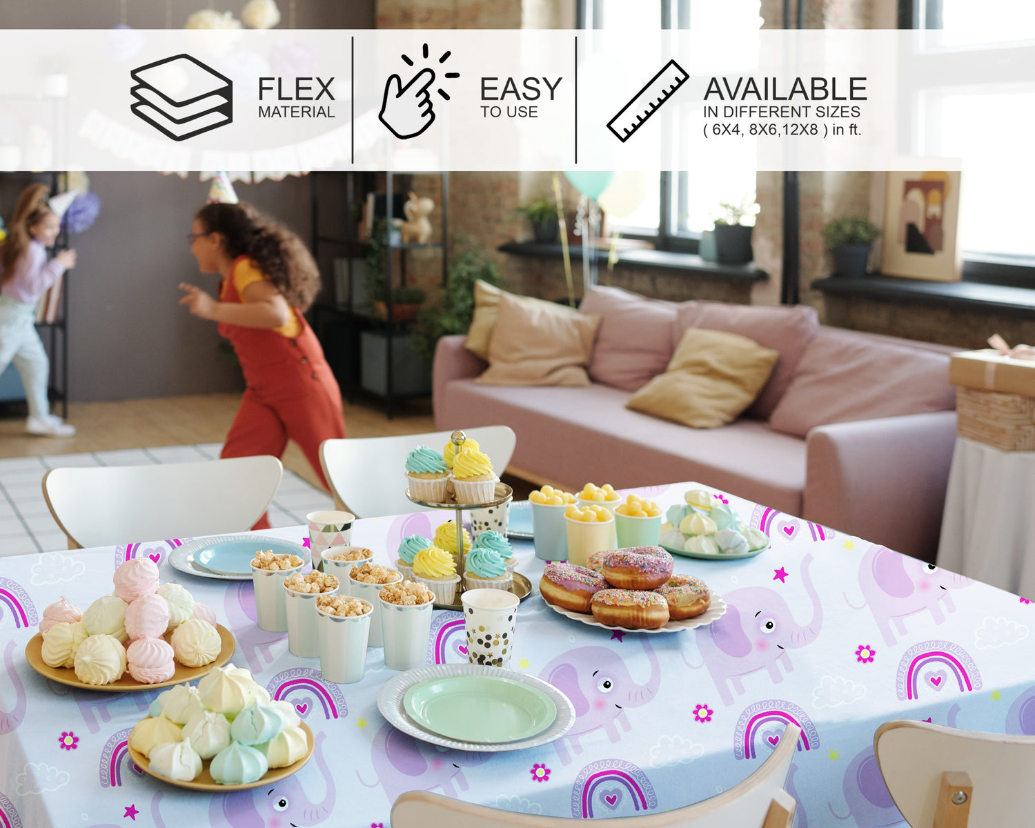 Premium Flex Material Cake Table Cover is Elegant, easy to clean, and lightweight. This theme-based cover features attractive designs, perfect for one-time use in birthday decorations. Please note, the product color may slightly vary due to photographic lighting sources or your display settings. Three sizes are available, as shown below in the variants section.