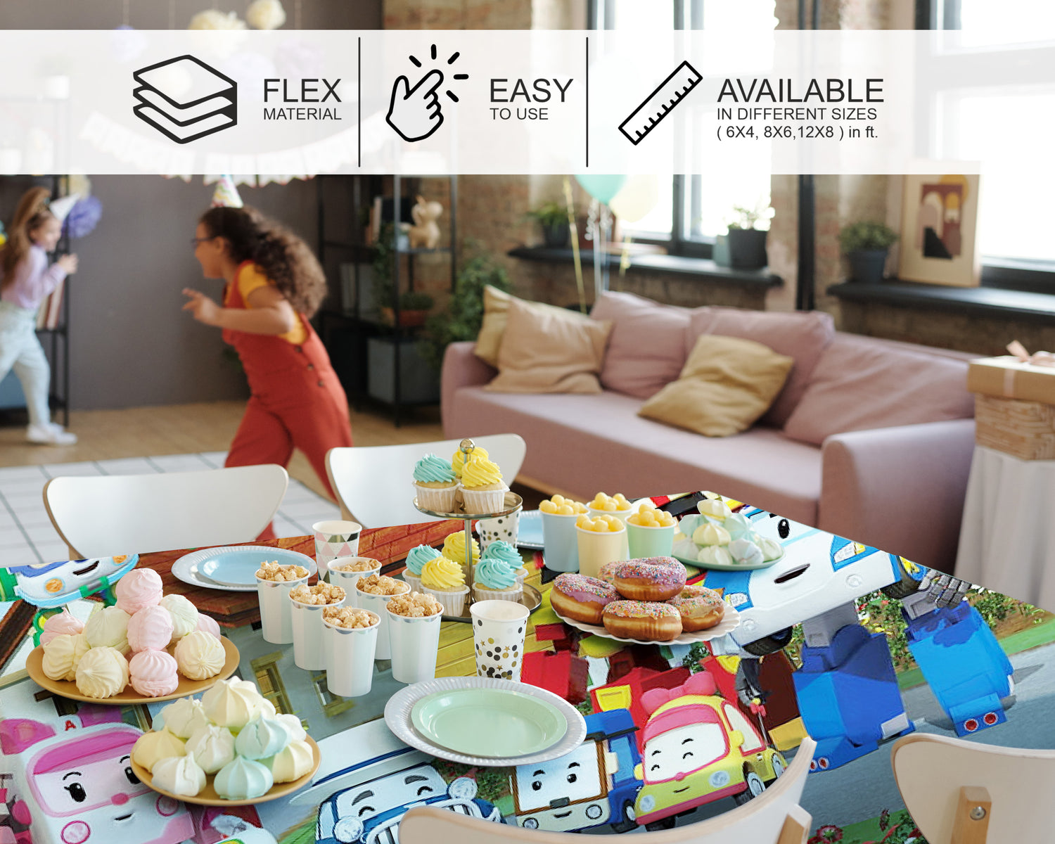 Premium Flex Material Cake Table Cover is Elegant, easy to clean, and lightweight. This theme-based cover features attractive designs, perfect for one-time use in birthday decorations. Please note, the product color may slightly vary due to photographic lighting sources or your display settings. Three sizes are available, as shown below in the variants section.