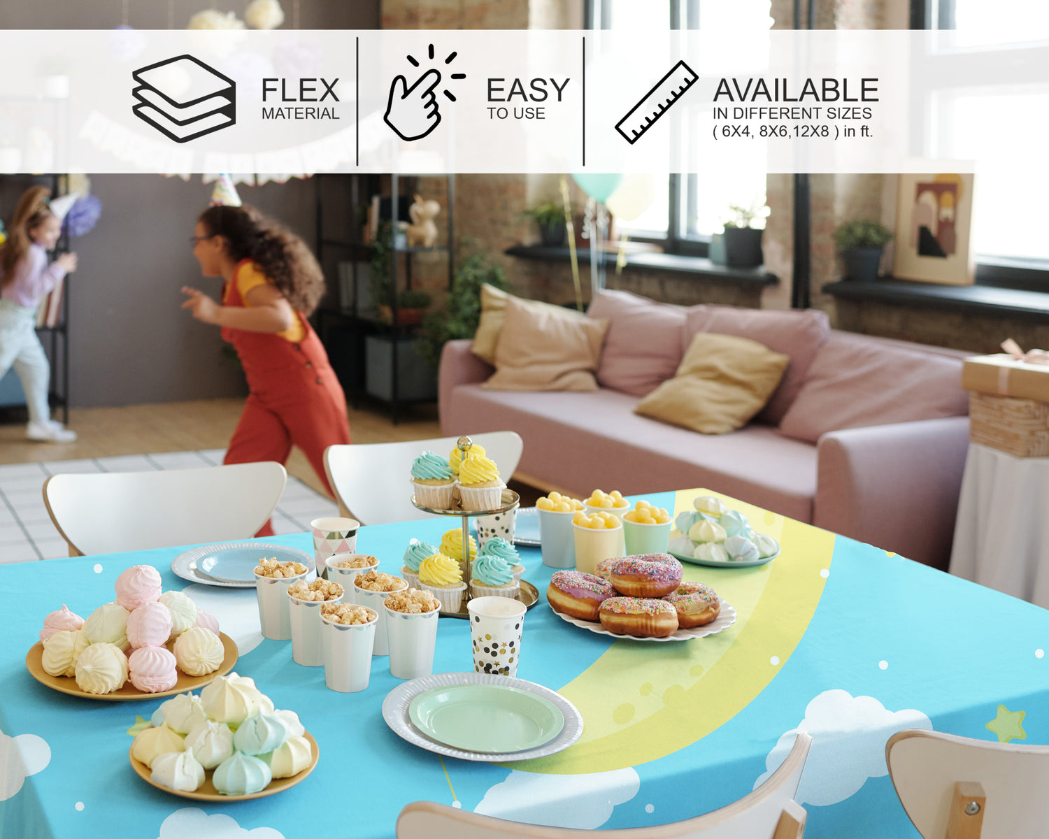 Premium Flex Material Cake Table Cover is Elegant, easy to clean, and lightweight. This theme-based cover features attractive designs,