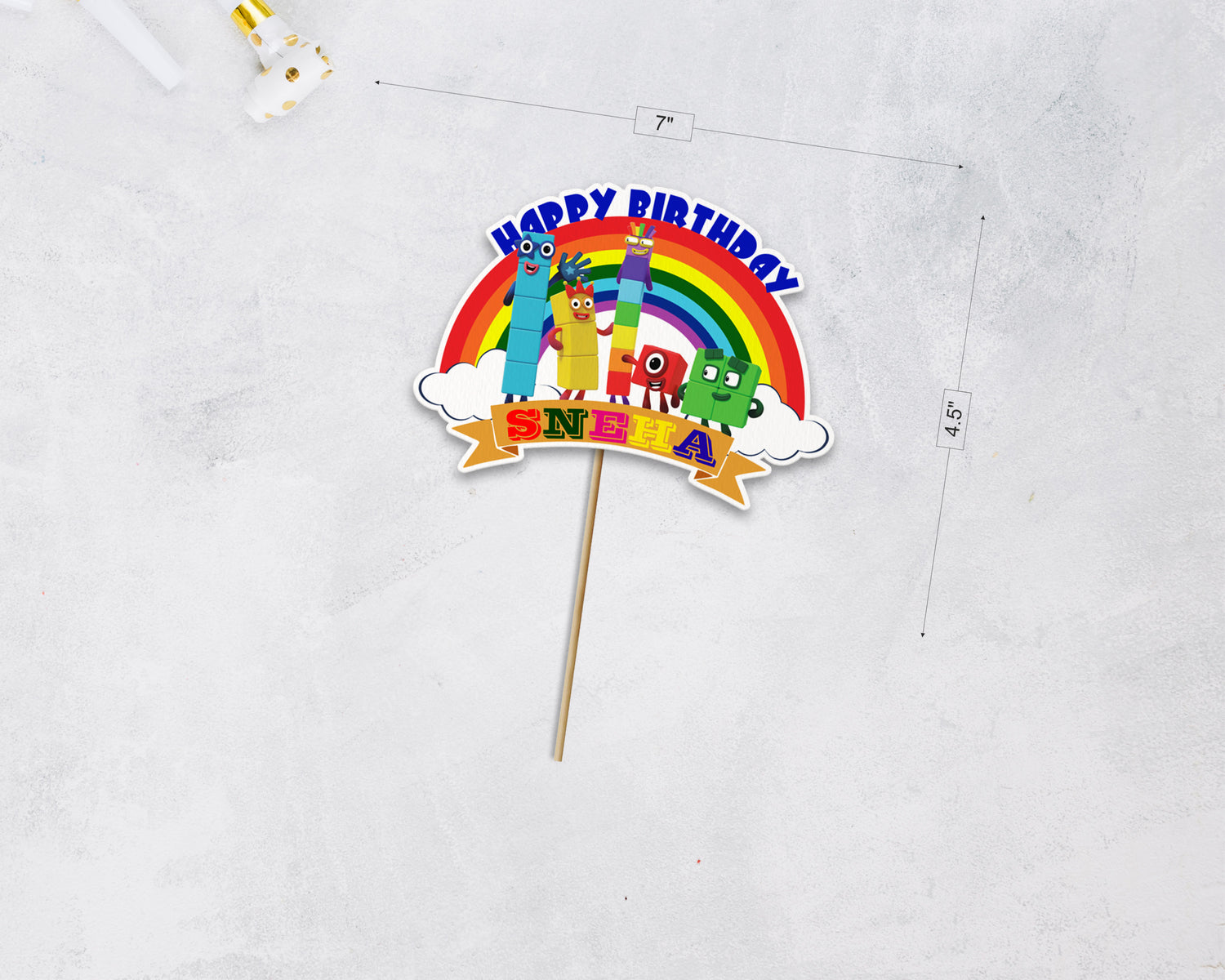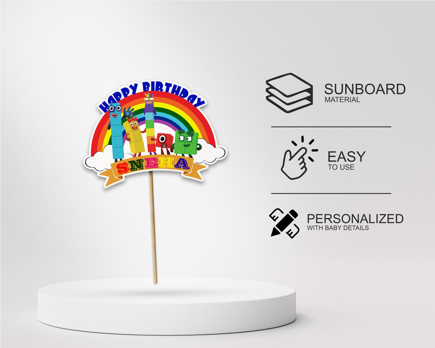 Make a statement with your Number Blocks Birthday Party decorations when you add this cake topper to your dessert table.