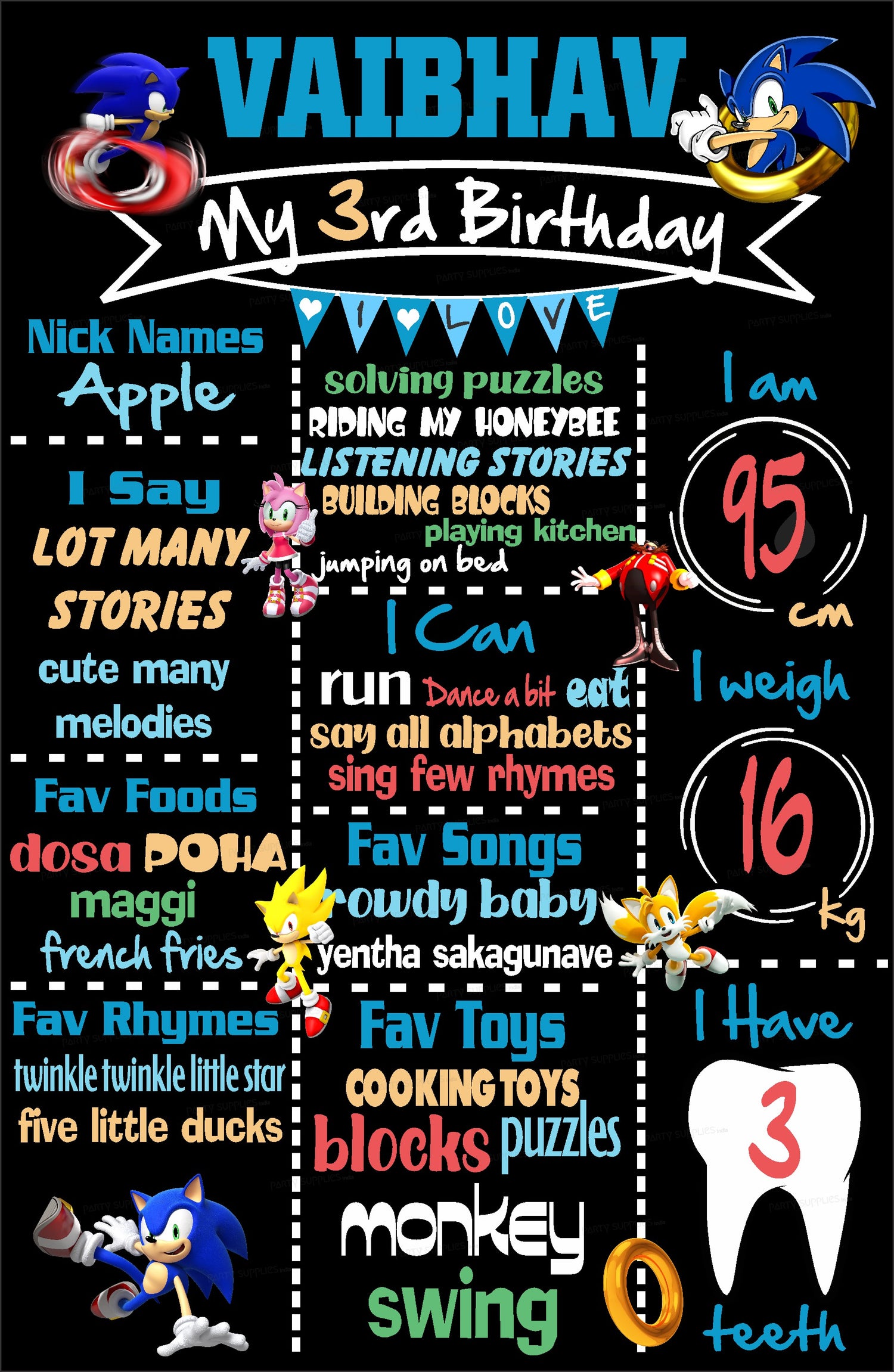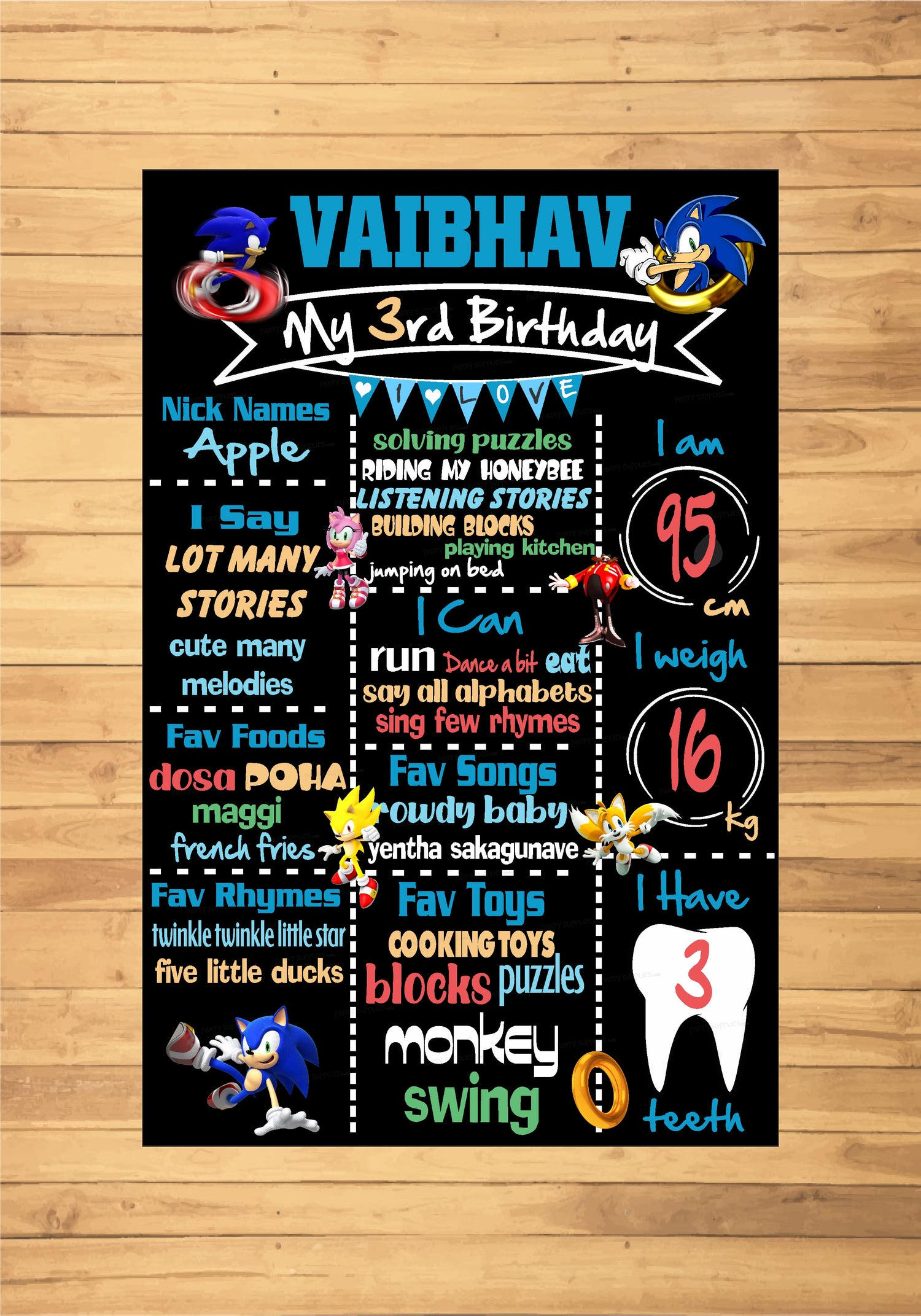 This Sonic he Hedgehog Themed birthday chalkboard poster will be the perfect touch for your loved one's birthday party. It will be completely personalized with your loved one's details. Hang it up inside or outside, frame it or use it as a photo prop for very special and memorable birthday pictures!