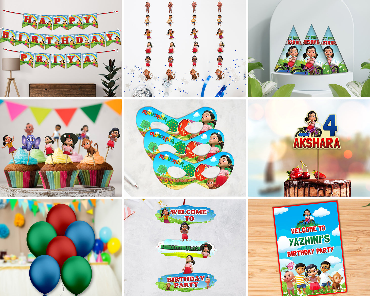 Chutti Kannamma Theme combo kits will make celebrating your fun moments and there be a perfect combo products to create a memorable day and amazing experience, yourself and your family Add a perfect touch to your kids party with our beautiful customized party combo