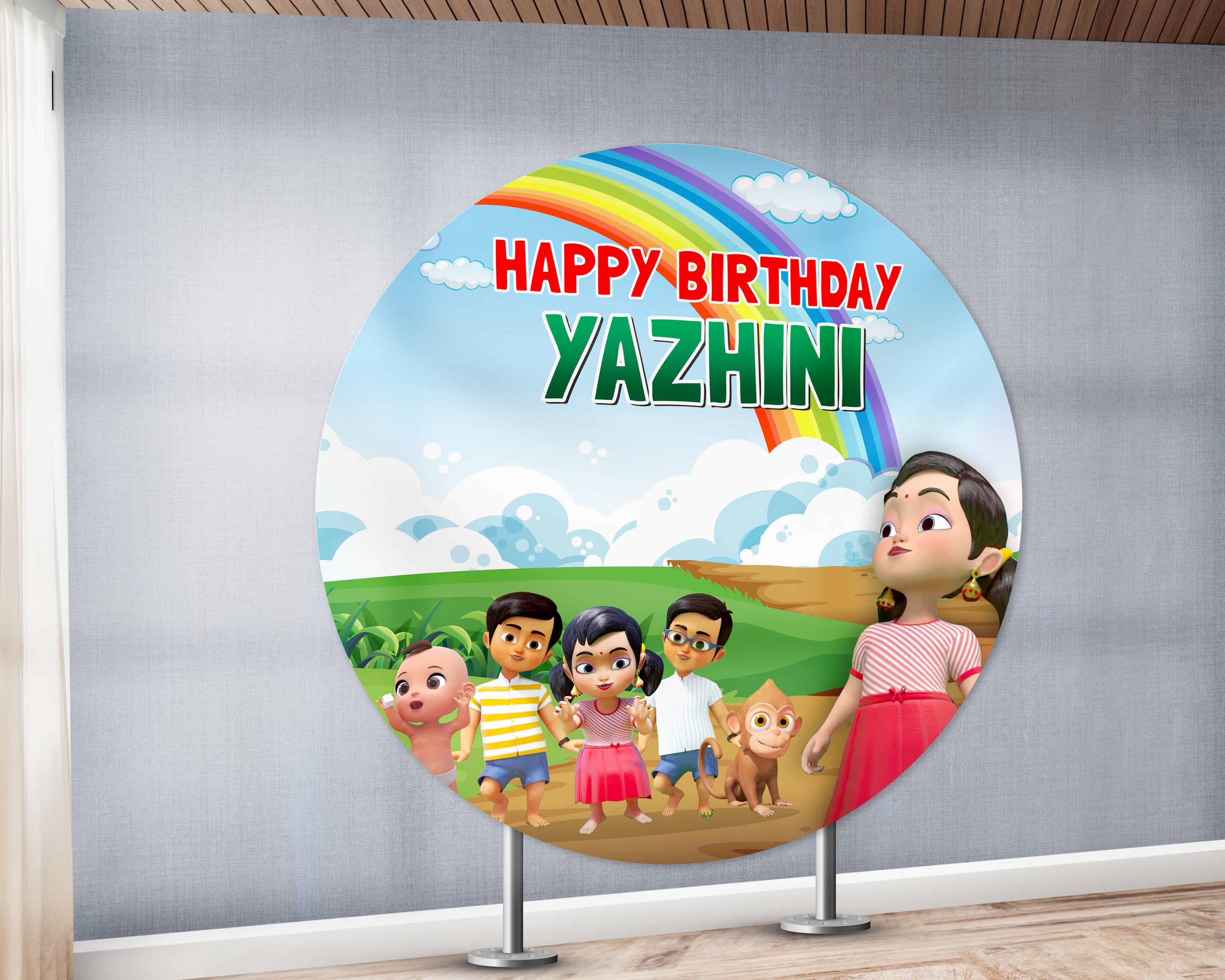 For Round Backdrop we will be providing the final flex material print, it will not be delivered in round shape. Customers are requested to cut the backdrop according to their requirements in round shape.