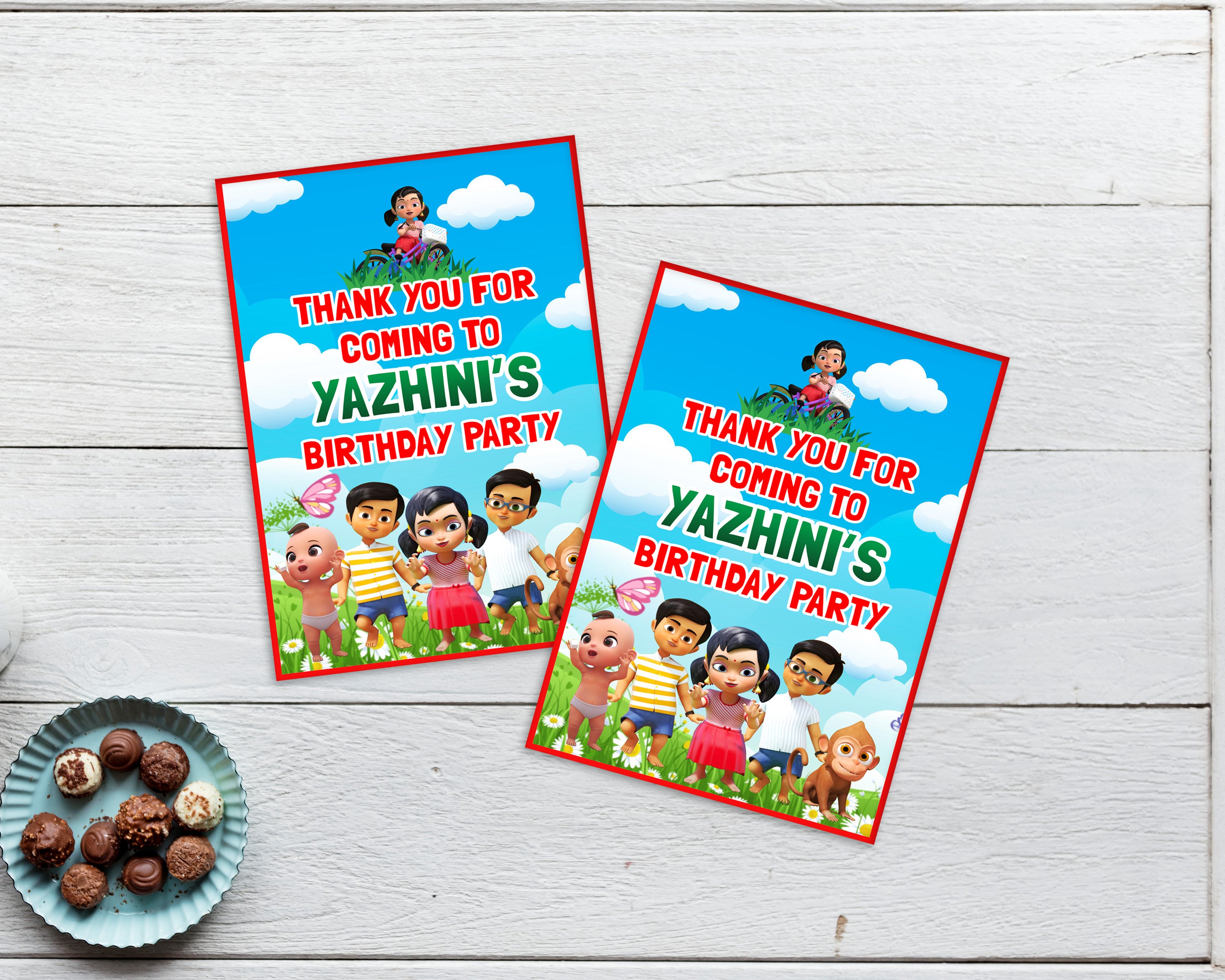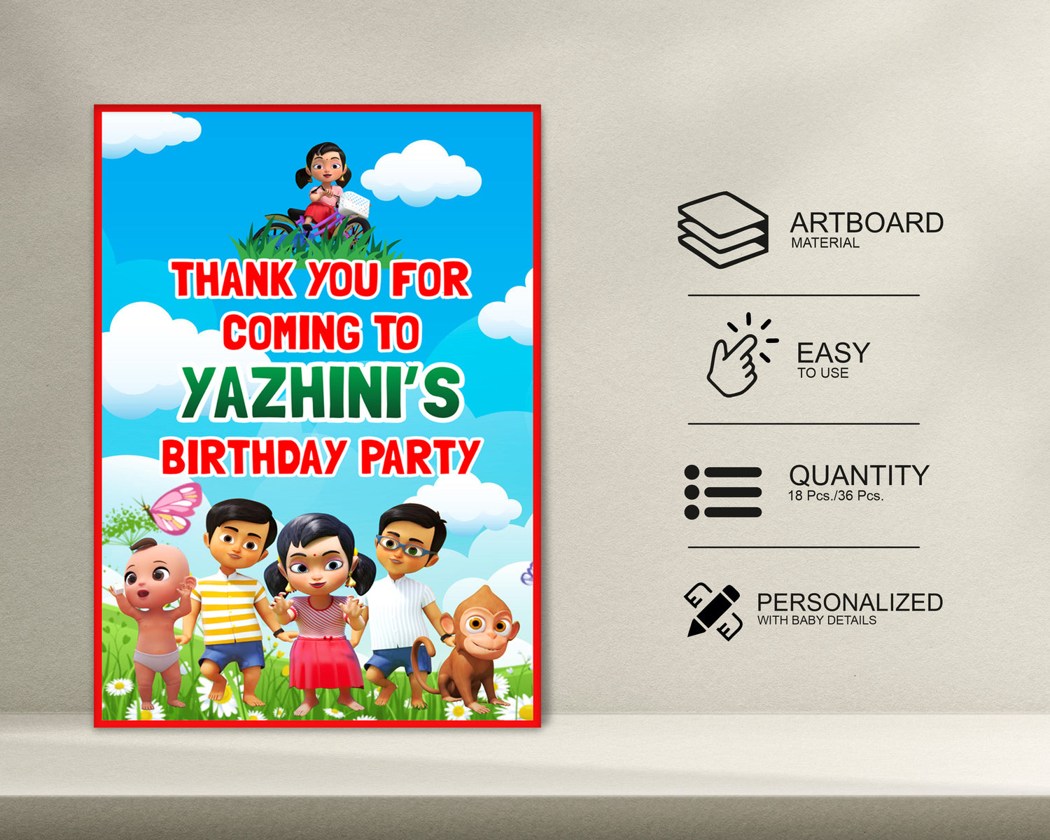 Birthday parties are fun! Send your birthday party memories in style with our Chutti Kannamma theme based Thank you Cards personalized with baby name. Made of 225 GSM quality Art board material.