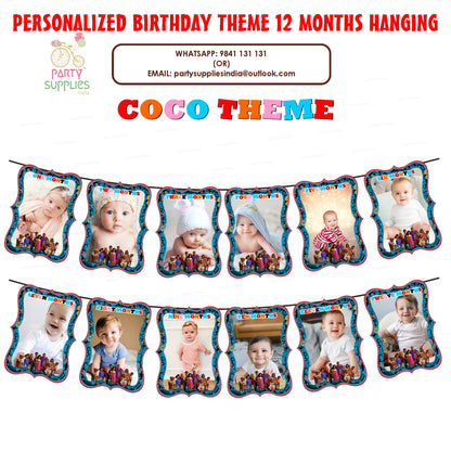 The Coco theme based photo banner is perfect decoration for baby's 1st birthday party. It’s an eye-catching birthday banner with beautiful color, especially with lovely photos of your baby on it which is a special way to bringing a unforgettable and memorable party. This 12 Months Birthday Banner is made of 225 GSM quality Art board material. This package contains 1 set photo banner with ribbon. Size of each month banner will be 6 inches of width and 9 inches of height.