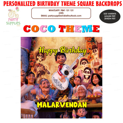 This Coco theme based Square Backdrop can be personalized with your baby details. You can share the baby details in form provided below. It comes with different variant sizes.