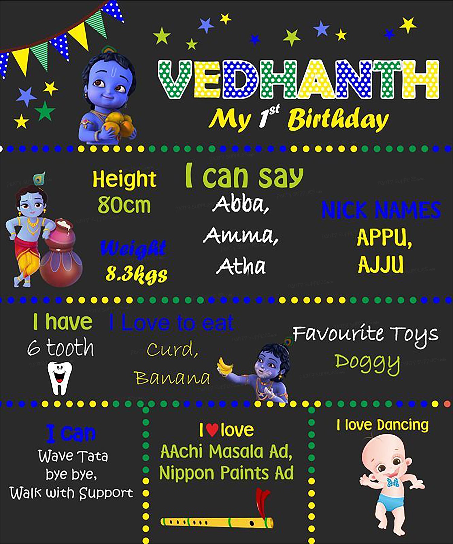 Little Krishna is the darling of Vrindavan, the land of peace and tranquility. While Krishna is busy with his endless pranks and mischiefs accompanied by his friends, the people around him are always captivated by his charm and music. Wouldnt the Little Krishna theme be the best to celebrate your little one who has captivated you.