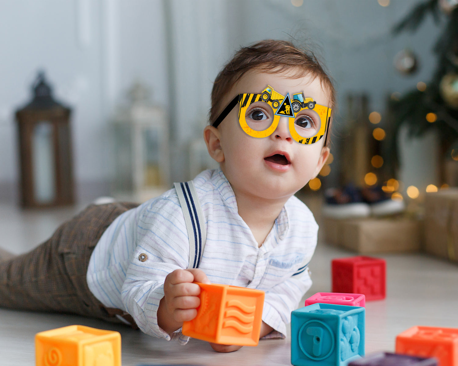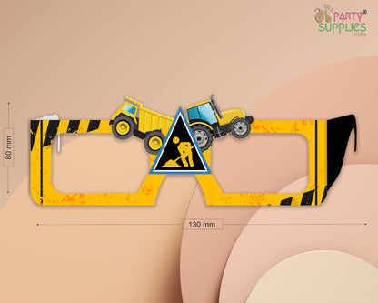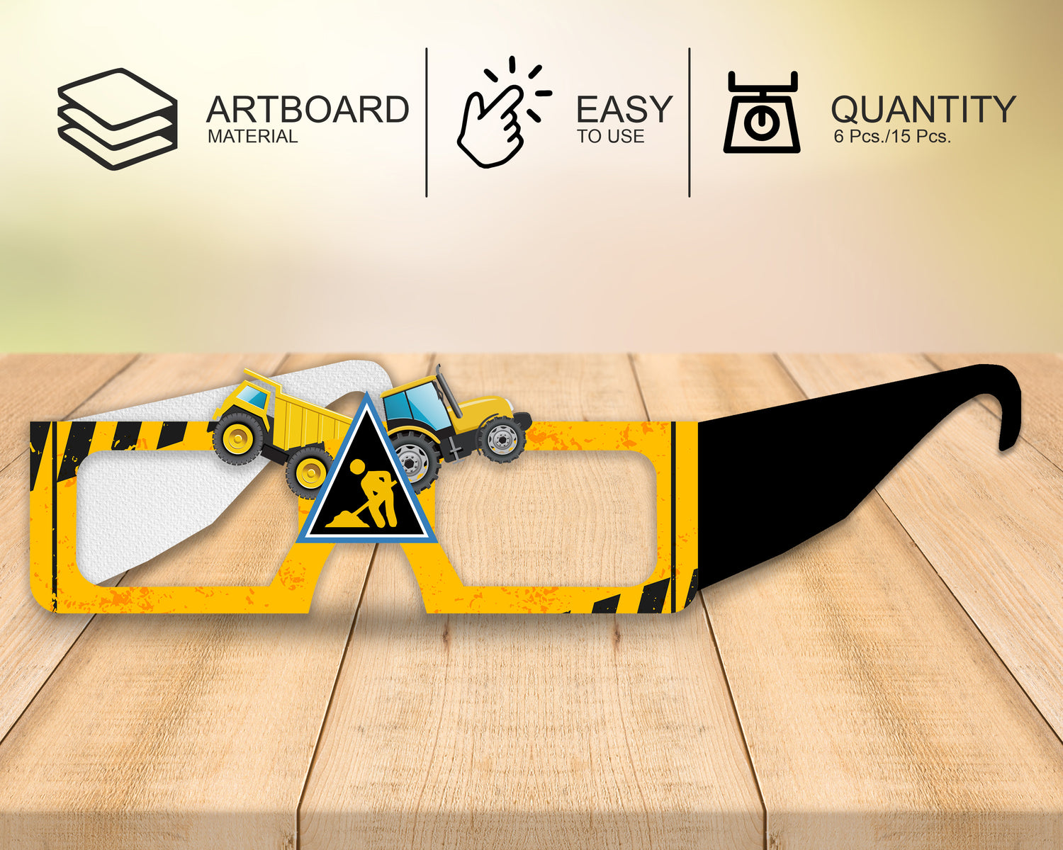 Construction Theme based eye glasses made of thick paper material for kids birthday party celebrations. This paper goggles suits perfect for kids.