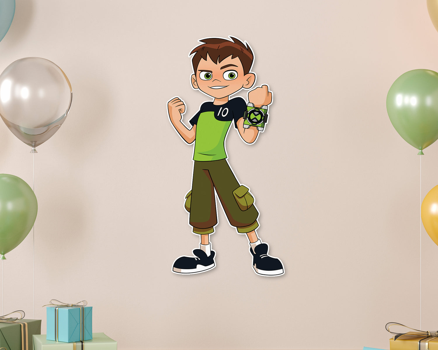 Because Ben 10 and the background of intergalactic characters is a fictional series, it makes a pretty tough choice for a family vacation or birthday venue. The good news is that you could re-create the background with this ! All you need is some tape and a little creative spunk! Paste this cutout against a wall in your party room to create a photo backdrop that all the kids will love!