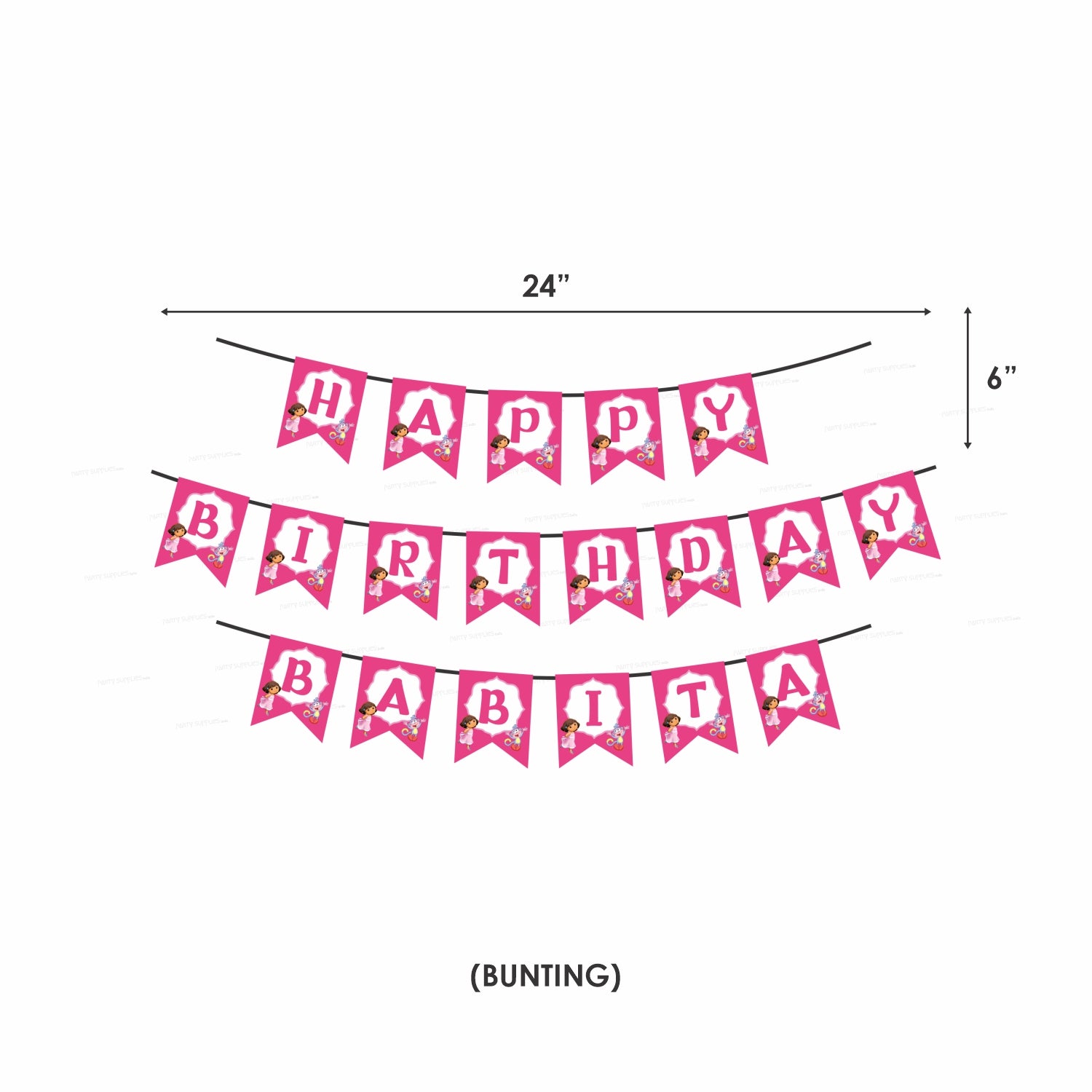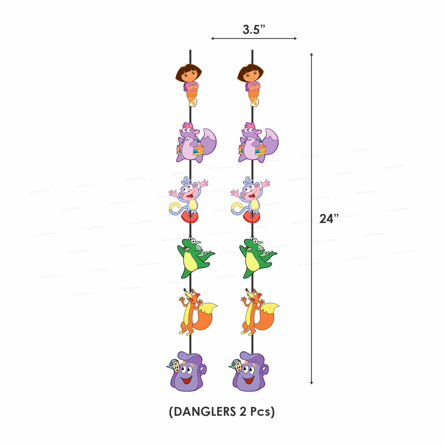 Dora, a seven-year-old girl of Latin American descent, embarks upon numerous adventures in the wilderness with her friend Boots, a monkey, and a variety of fun and useful tools. Dora the Explorer is a 7 year old, Latino girl. Dora uses her knowledge to communicate with her friends, overcome obstacles and reach her goals. The show is often accompanied by a variety of Dora's friends -- Isa the Iguana, Boots the monkey, Benny the Bull, the Fiesta Trio (a bug band), Señor Tucan, Tico (a squirrel), Swiper the Fox and Dora's Map and Backpack. The theme is an all time hit among kids at their party. The decor and supplies include all items to make your party grand.