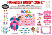 Dora, a seven-year-old girl of Latin American descent, embarks upon numerous adventures in the wilderness with her friend Boots, a monkey, and a variety of fun and useful tools. Dora the Explorer is a 7 year old, Latino girl. Dora uses her knowledge to communicate with her friends, overcome obstacles and reach her goals. The show is often accompanied by a variety of Dora's friends -- Isa the Iguana, Boots the monkey, Benny the Bull, the Fiesta Trio (a bug band), Señor Tucan, Tico (a squirrel), Swiper the Fox and Dora's Map and Backpack. The theme is an all time hit among kids at their party. The decor and supplies include all items to make your party grand.