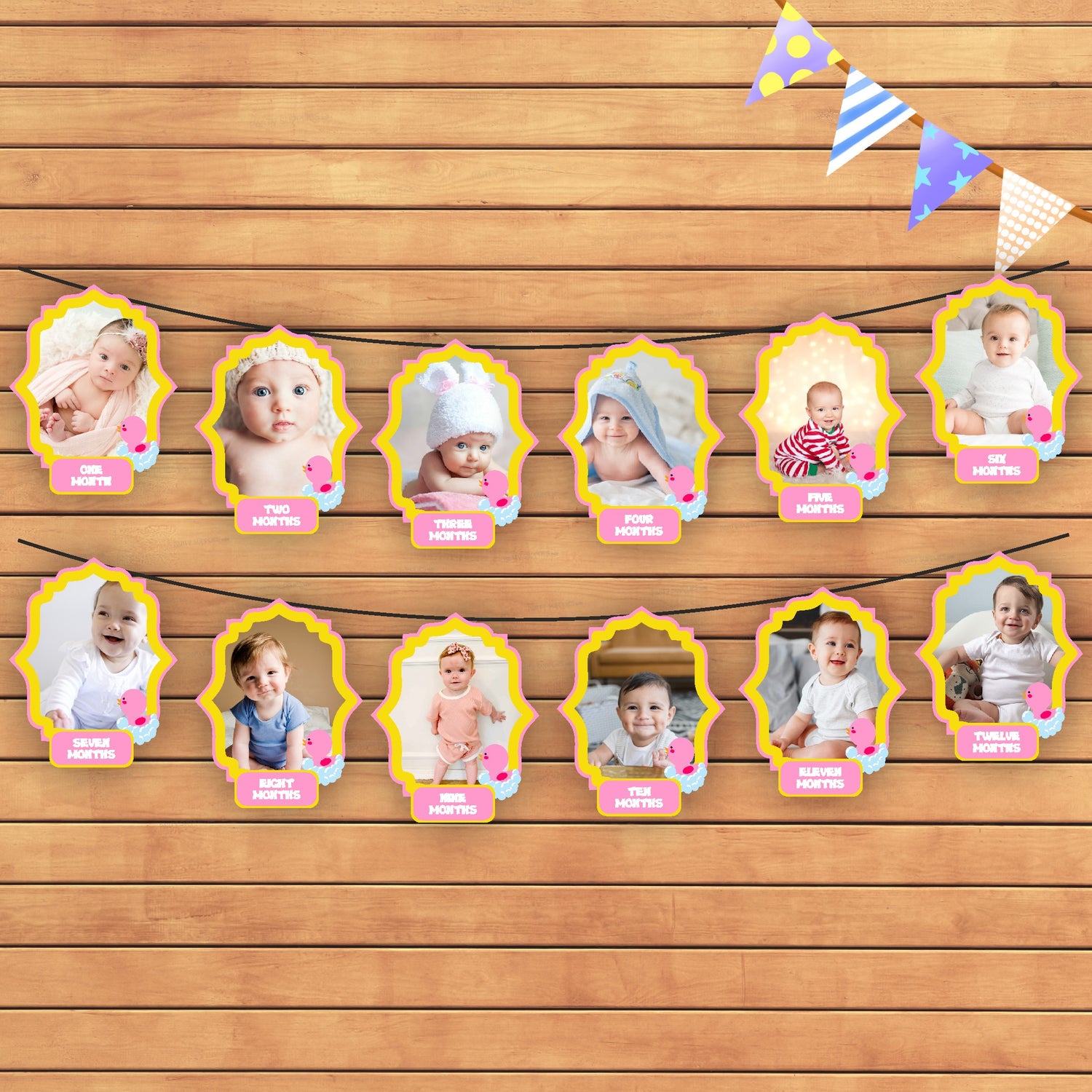 The Cocomelon Girl theme based photo banner is perfect decoration for baby's 1st birthday party. It’s an eye-catching birthday banner with beautiful color, especially with lovely photos of your baby on it which is a special way to bringing a unforgettable and memorable party. This 12 Months Birthday Banner is made of 225 GSM quality Art board material. This package contains 1 set photo banner with ribbon. Size of each month banner will be 6 inches of width and 9 inches of height.