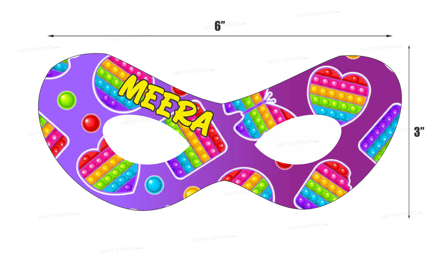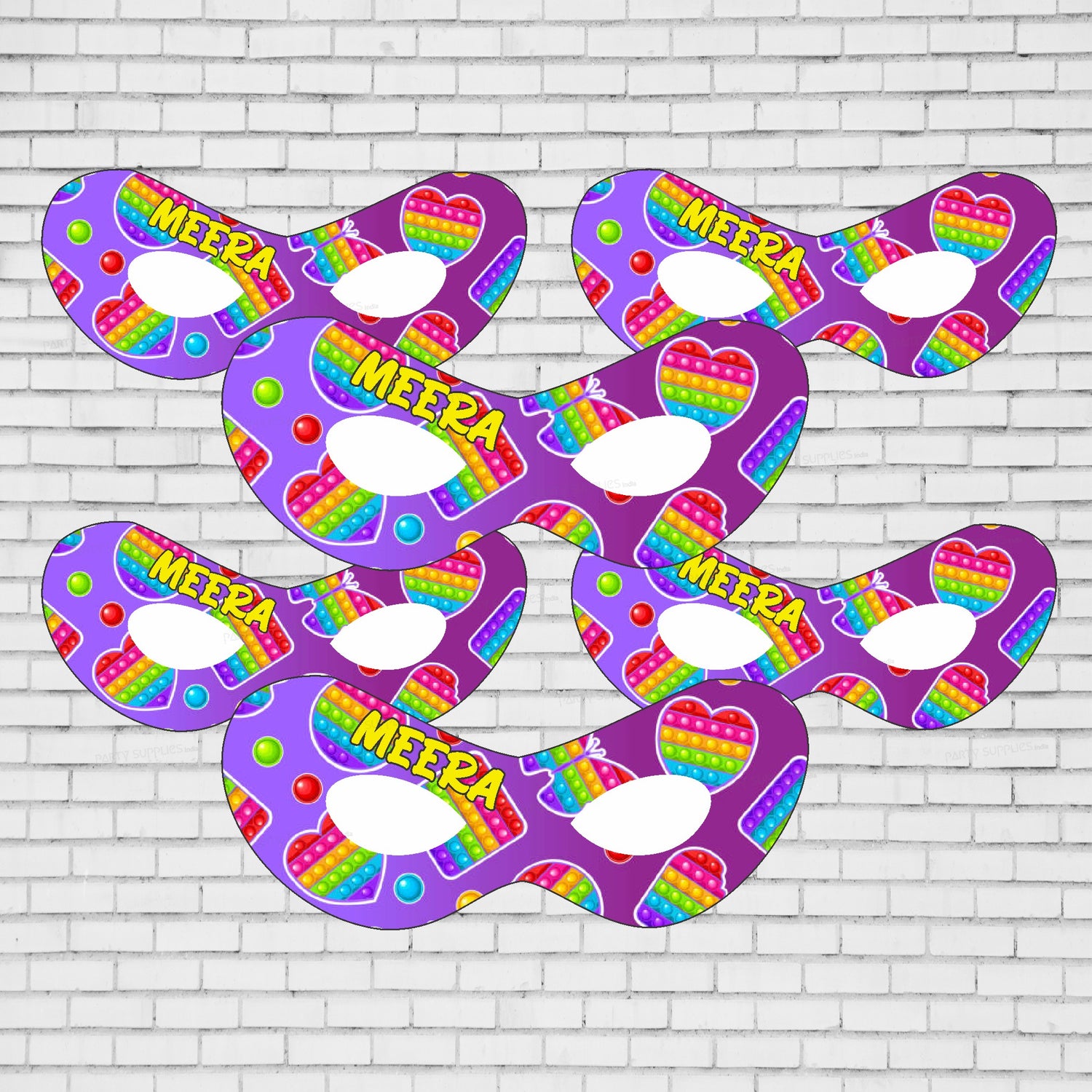 Creating colourful birthday party decoration with Pop It theme based eyemask. Get colourfull eyemasks for birthday party event for your lovely kids . The package includes 5 - 10 Masks, each with an attached elastic string.