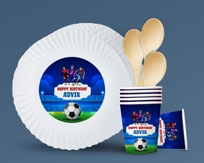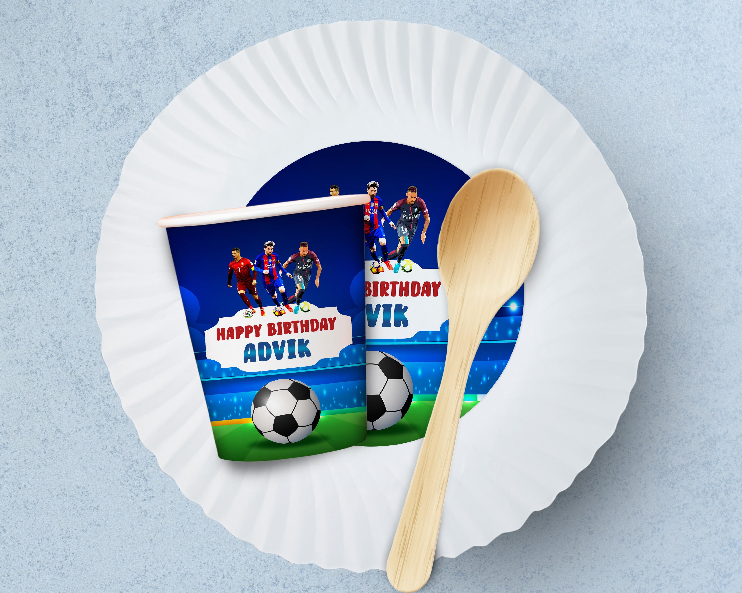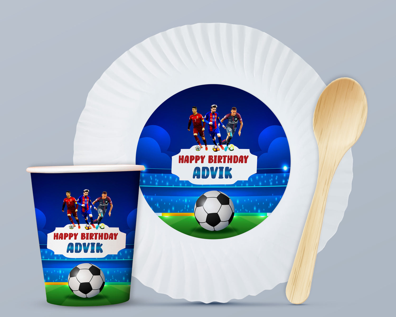 Printed party cups, plates, and plain spoon combo birthday party supplies for themed parties are available with us. They are disposable and made of eco-friendly materials. Our plates are made of thick paper, with theme-based customization including baby details added, designed, printed, and pasted onto the plates and cups as shown in the reference images. They will be available only in combo sets in the below-mentioned variants.