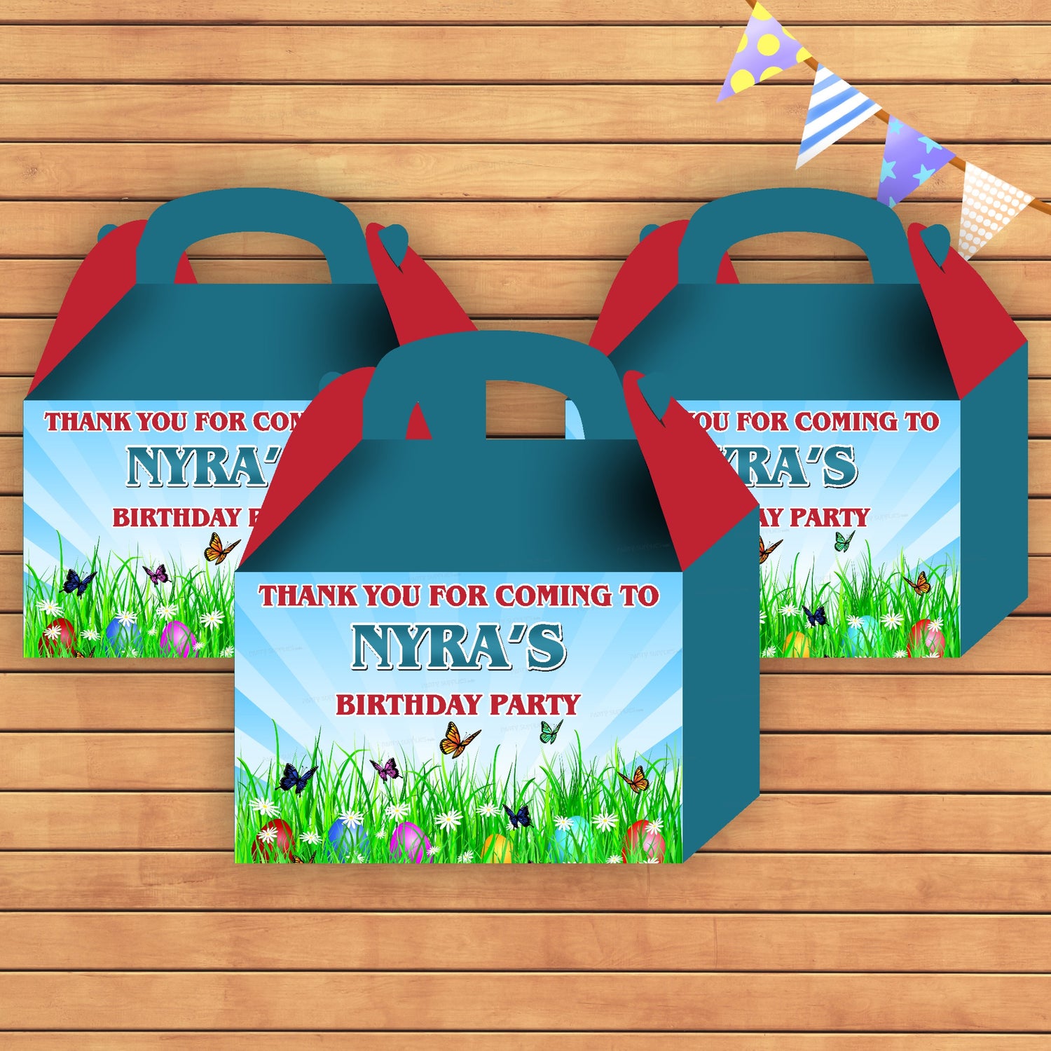 Colorful and Butterfly theme based Goodie return gift boxes personalized with baby name for take away gifts for guests. Made of 225 GSM quality Art board material to withstand up to 200g to 400g of weight. This boxes can be used to gift items like Chocolates, Cookies, Cup cakes, etc..