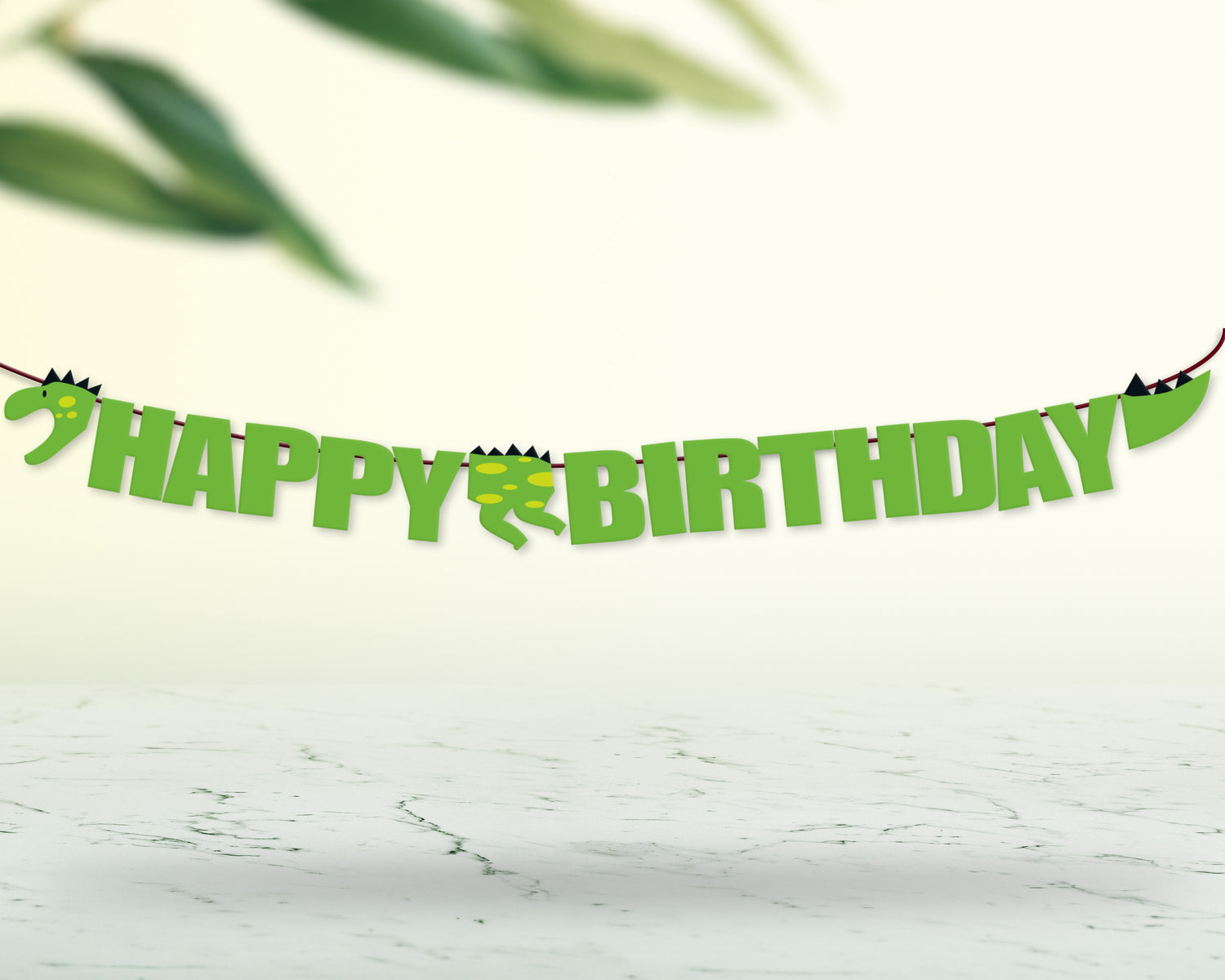 Hang this roar-some 'Happy Birthday' bunting at any dinosaur themed party either over the buffet table or at the entrance to the party. With a silhouette of a T-Rex's head, tail and feet and the body made up of the wording Happy Birthday, this green foiled bunting would look great