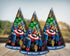 Pack of 5 Marvel Avengers Party Hats from the Multi Heroes range.Avenger Assemble Party Hats are cone-shaped and made of cardboard with an elastic cord to help secure them.Cone party hats each feature an image of Hulk, Captain America, Thor, or Iron Man, making them ideal for a superhero party or Avengers party.Hand out to guests for them to wear, display on your party table as a party decoration, or use as a party favour to fill a party bag.