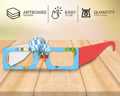 Hot Air Boy Theme based eye glasses made of thick paper material for kids birthday party celebrations. This paper goggles suits perfect for kids.