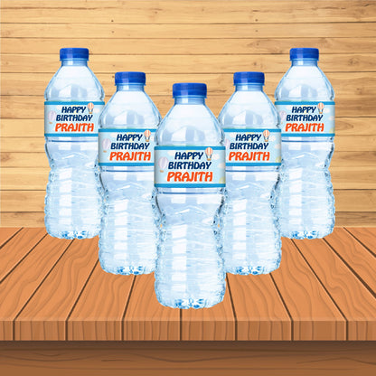 Get the Theme based Personalized Water Bottle Sticker Labels Includes 18 water bottle labels. Party supplies are ideal for rapidly sprucing up any refreshment bottle in your gathering subject. Water bottle stickers each SIZE 6" wide x 2" tall.