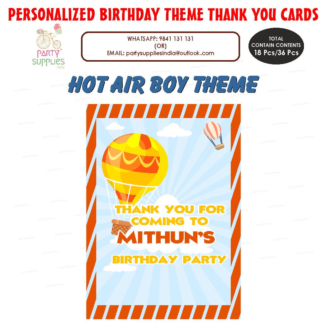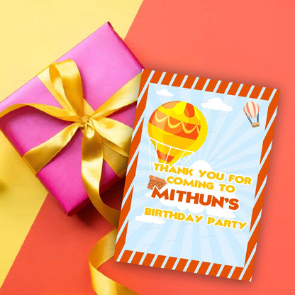 Birthday parties are fun! Send your birthday party memories in style with our Hot Air Theme Boy theme based Thank you Cards personalized with baby name. Made of 225 GSM quality Art board material.