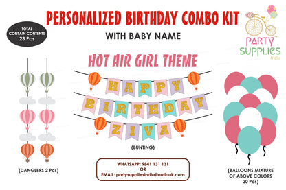 Go up, up and away with a hot air balloon birthday theme! Absolutely precious in every way, this celebration is full of vintage-inspired decorations and details. A light and lovely decoration scheme and a whimsical hot air balloon photo booth create a fun atmosphere to get carried away with. Basic Kit is Available for Hot Air Girl Theme.