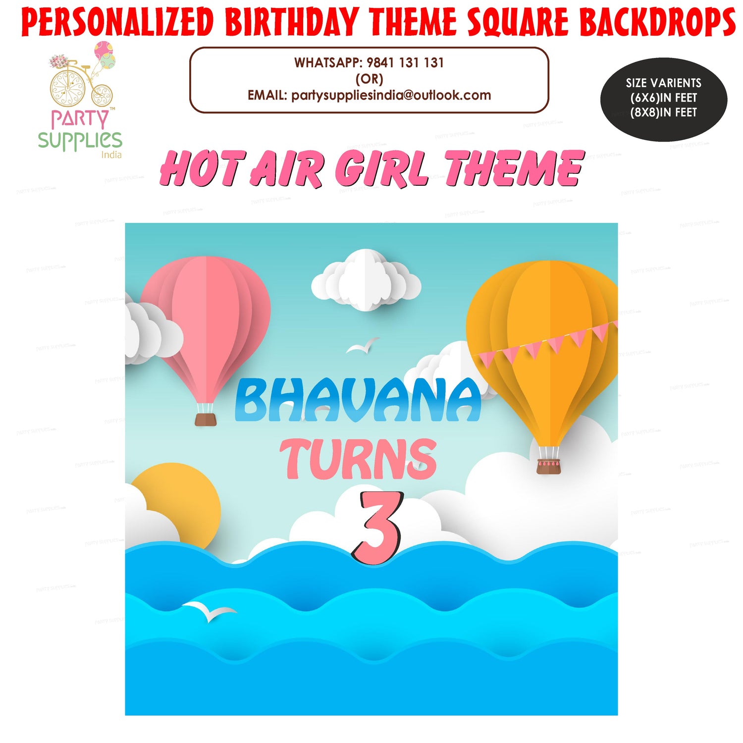 This Hot Air Theme Girl based Square Backdrop can be personalized with your baby details. You can share the baby details in form provided below. It comes with different variant sizes.