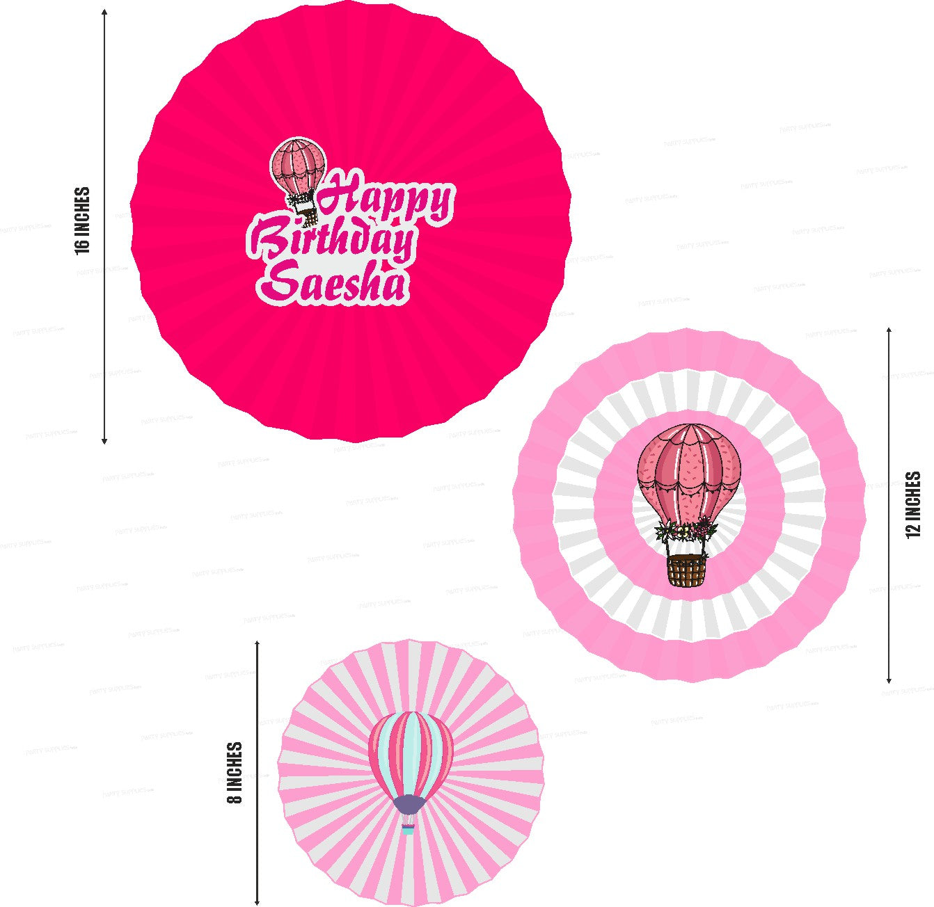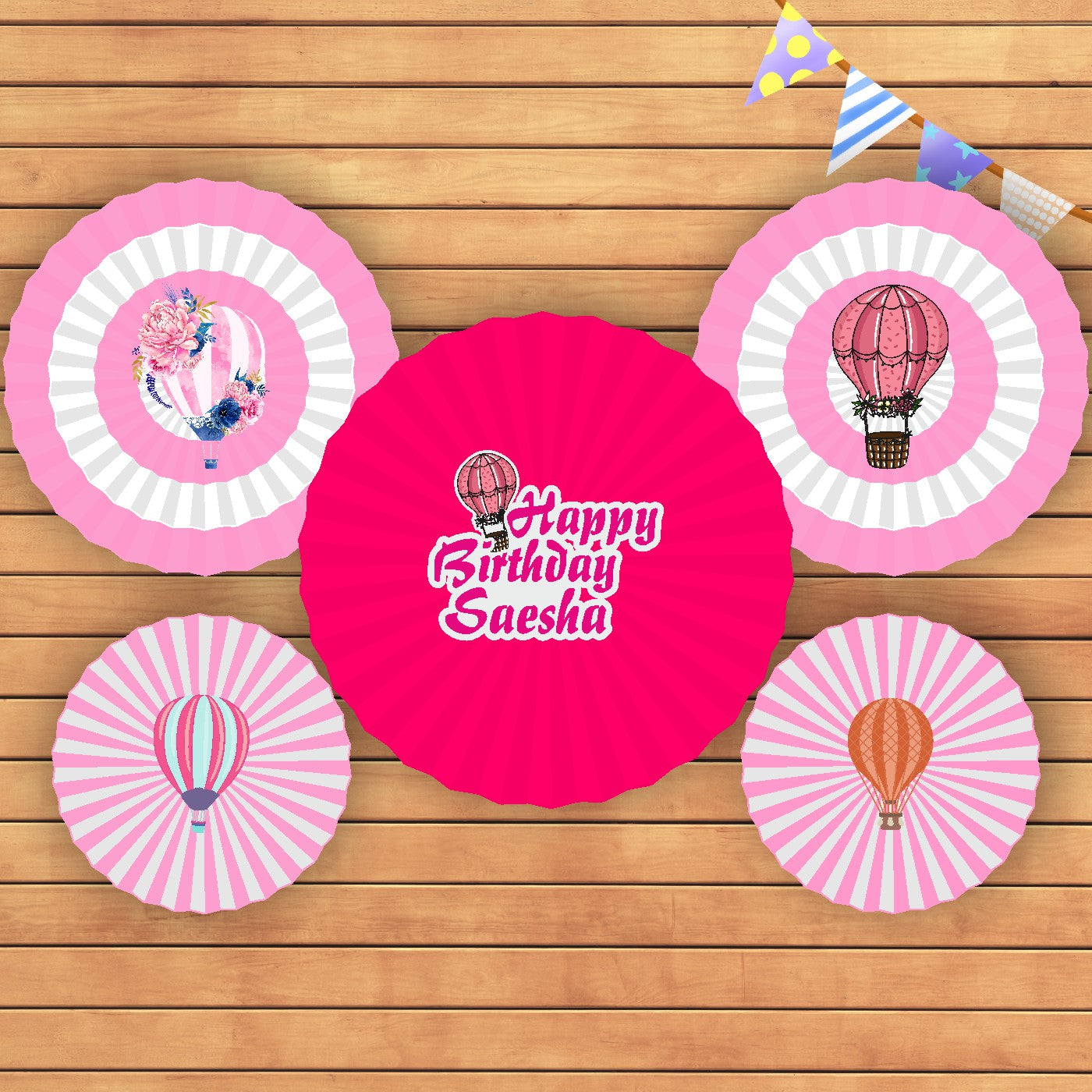 Hot Air Girl Theme Based Paper Fan with related characters placed at the centre which is mainly used for Birthday Party Decorations and made of quality chart material. Quantity - Pack of 5 Pcs. (1 Quantity of 16 Inches, 2 Quantity of 12 Inches, 2 Quantity of 8 Inches) 2 Minutes Setting-up process 1. Unpack and make it to paper fan shape. 2. Remove the red glue tape and paste it. 3. Stick the characters provided in the centre of paper fan using the double side tape provided at the backside of character.