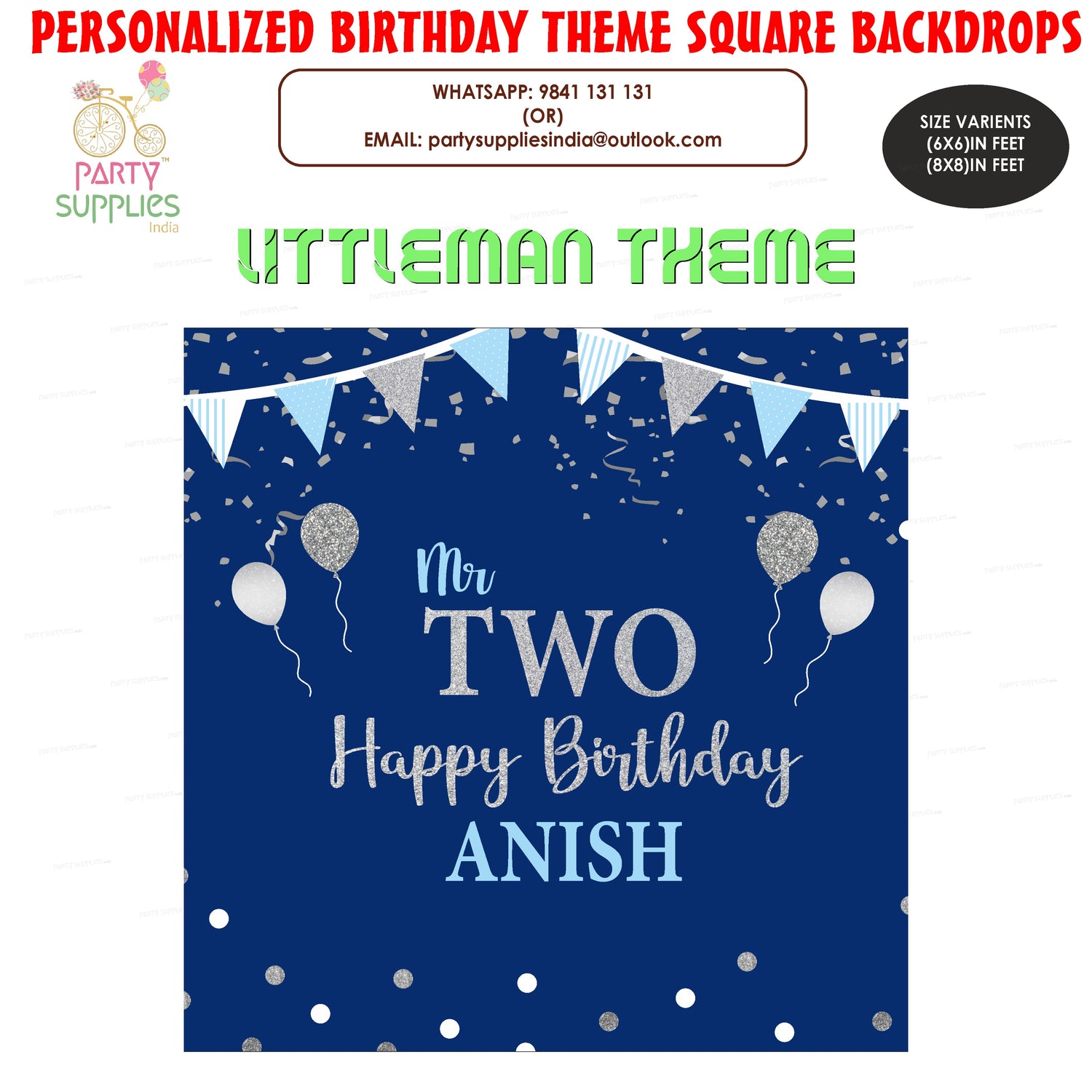 This Little Man theme based Square Backdrop can be personalized with your baby details. You can share the baby details in form provided below. It comes with different variant sizes.