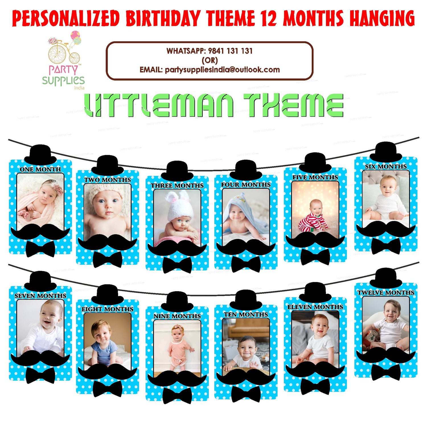The Little Man theme based photo banner is perfect decoration for baby's 1st birthday party. It’s an eye-catching birthday banner with beautiful color, especially with lovely photos of your baby on it which is a special way to bringing a unforgettable and memorable party. This 12 Months Birthday Banner is made of 225 GSM quality Art board material. This package contains 1 set photo banner with ribbon. Size of each month banner will be 6 inches of width and 9 inches of height.