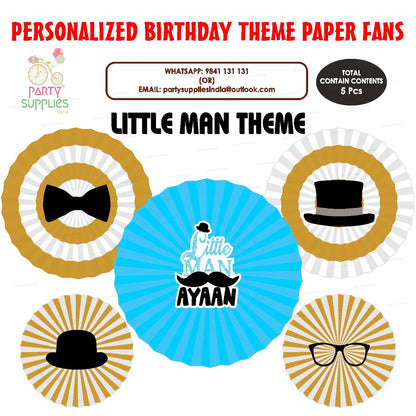 Little Man Theme Based Paper Fan with related characters placed at the centre which is mainly used for Birthday Party Decorations and made of quality chart material.