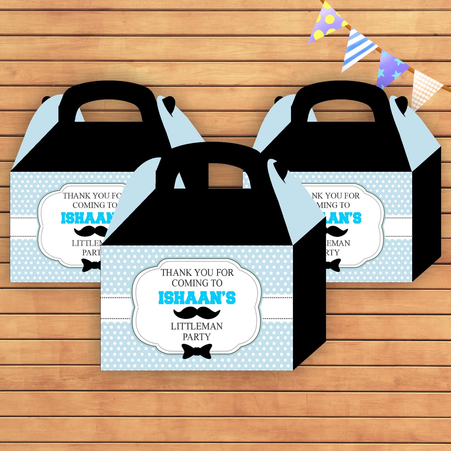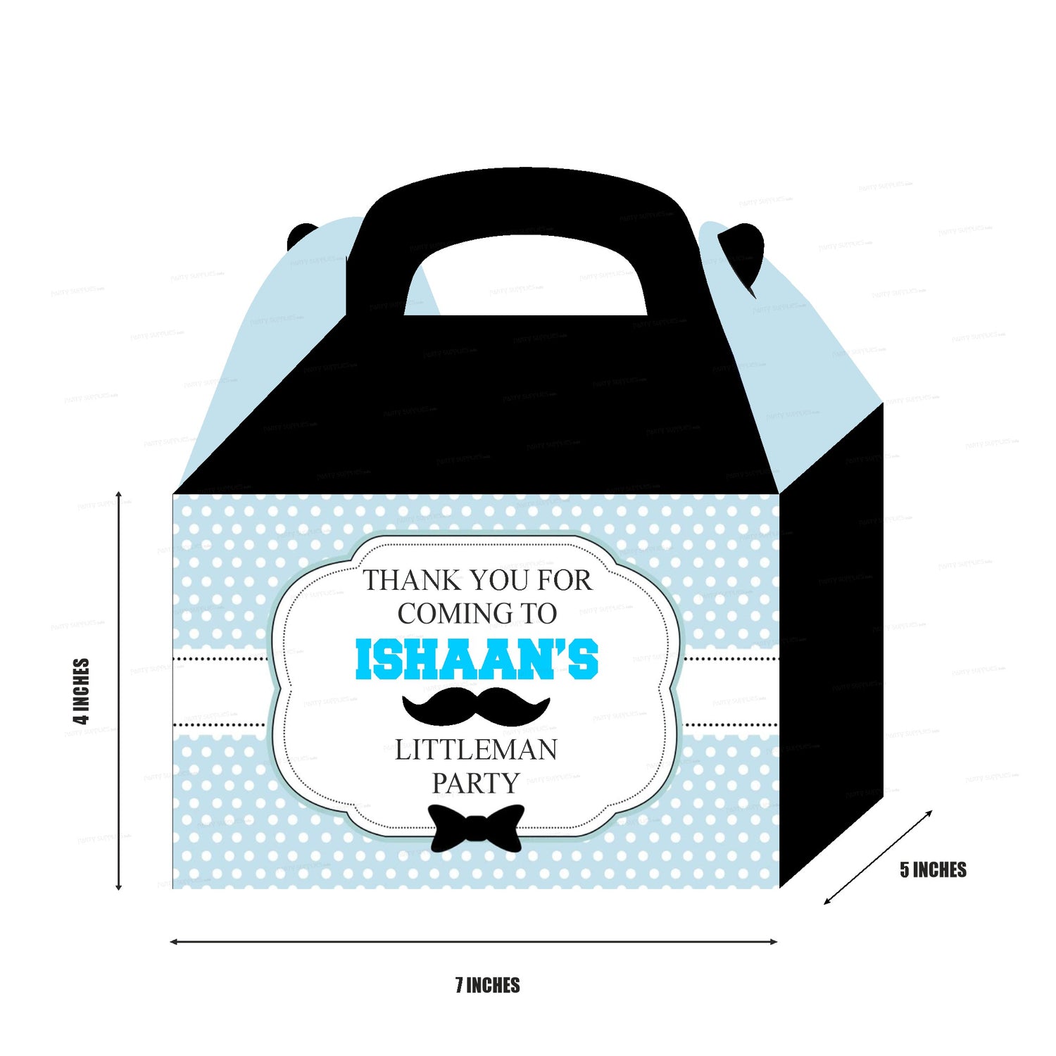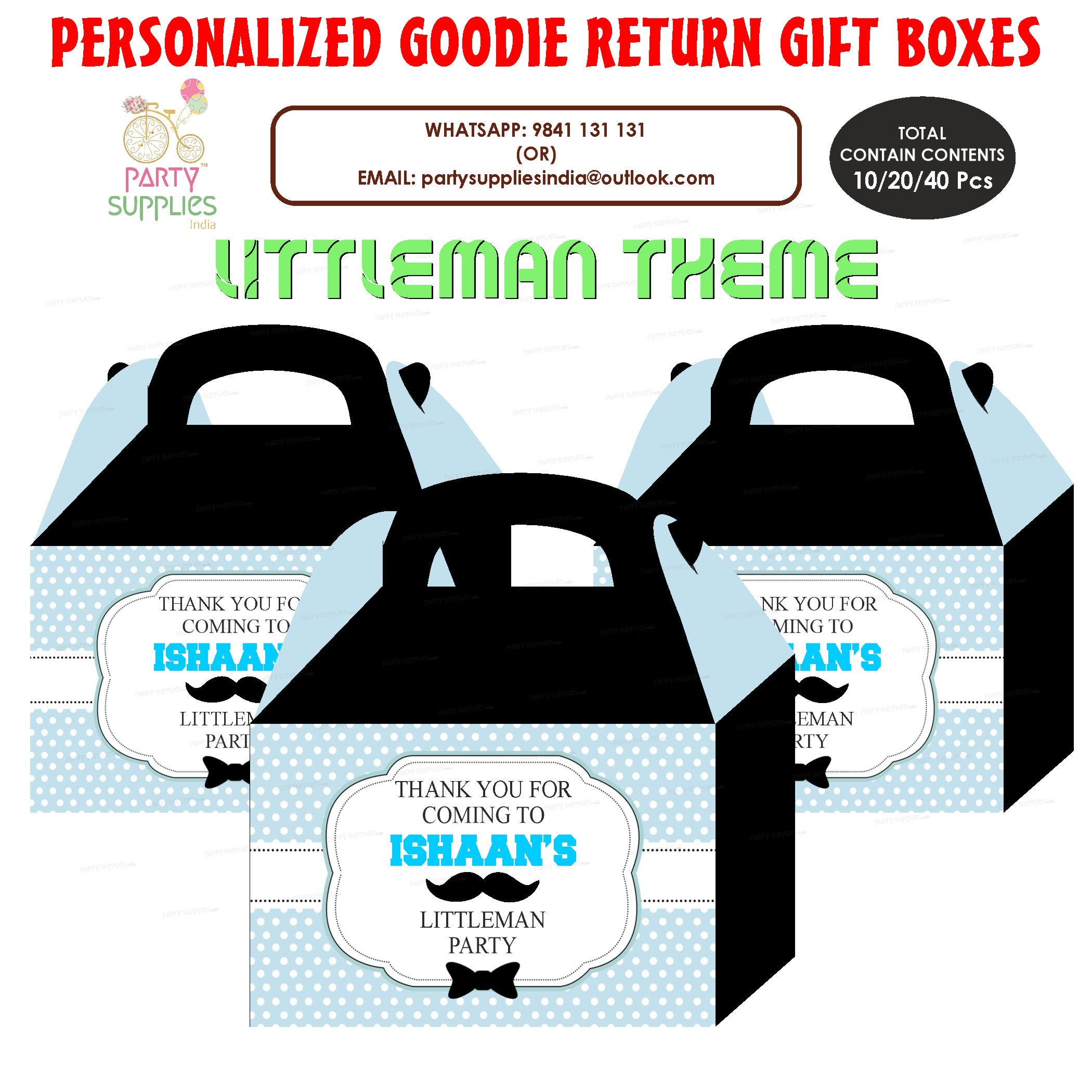 Colorful and Littleman theme based Goodie return gift boxes personalized with baby name for take away gifts for guests. Made of 225 GSM quality Art board material to withstand up to 200g to 400g of weight. This boxes can be used to gift items like Chocolates, Cookies, Cup cakes, etc..