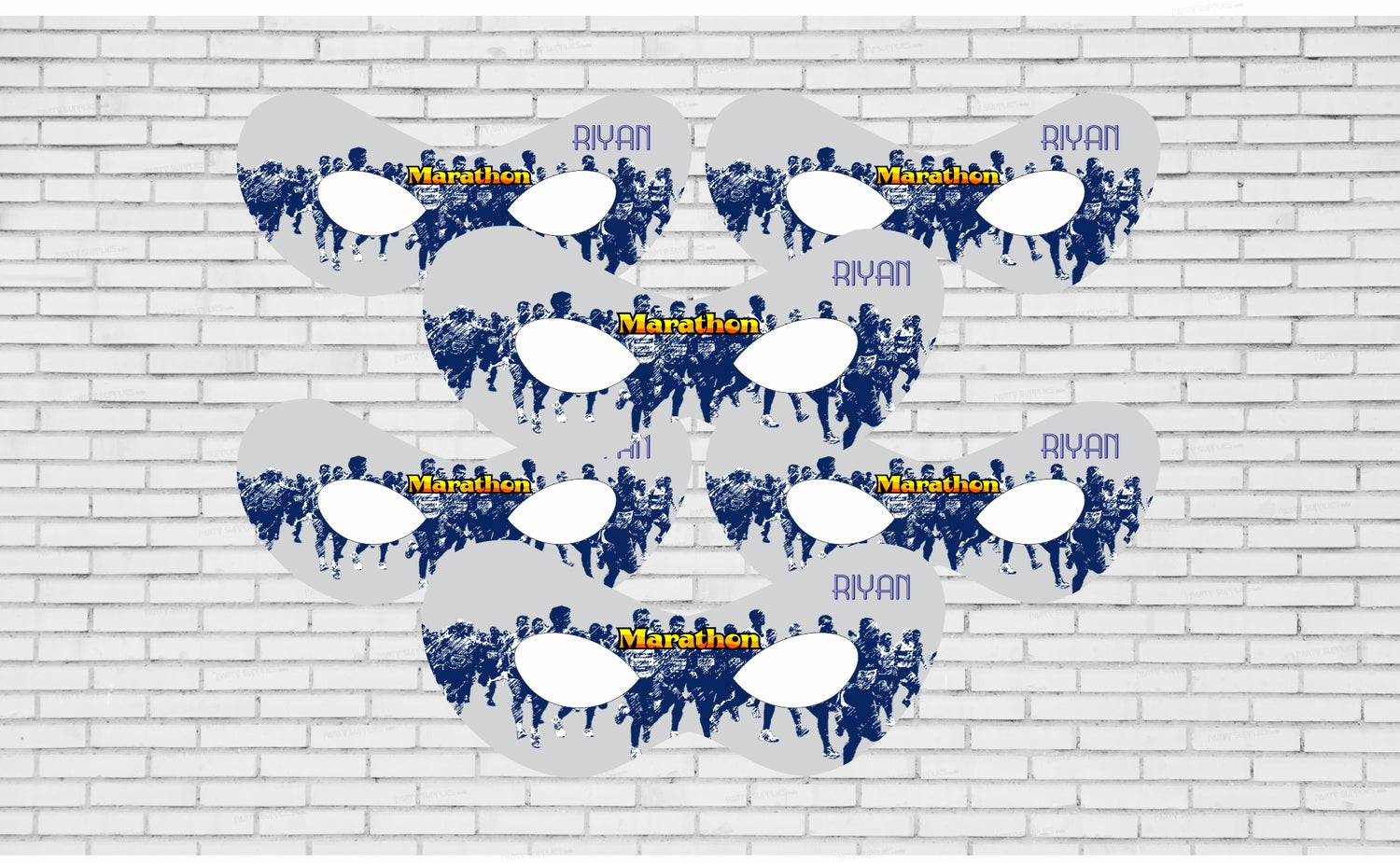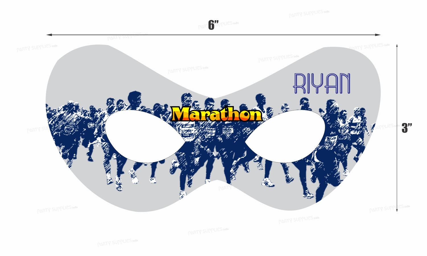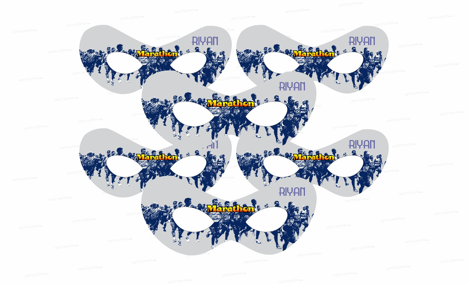 Highlight your look with our Marathon theme eye mask. Package includes 5 - 10 Masks, each with an attached elastic string and cutout holes for eyes.