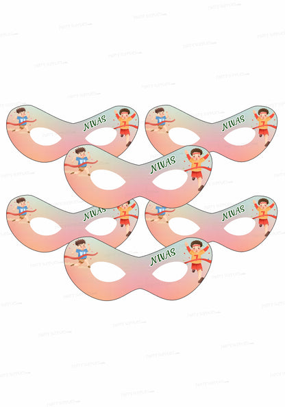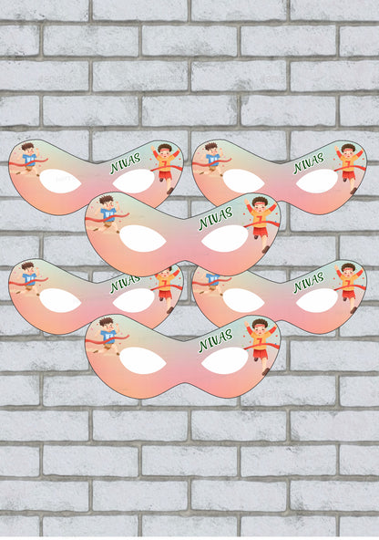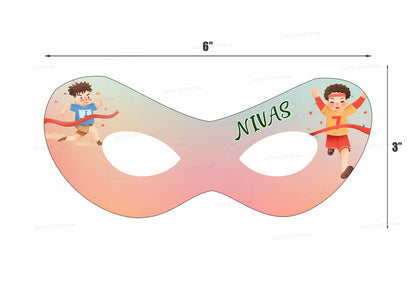 Highlight your look with our Marathon theme eye mask. Package includes 5 - 10 Masks, each with an attached elastic string and cutout holes for eyes.
